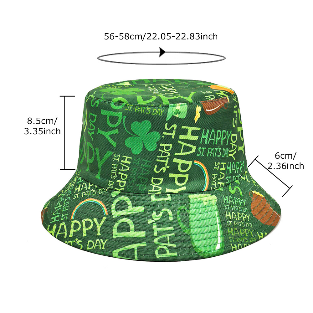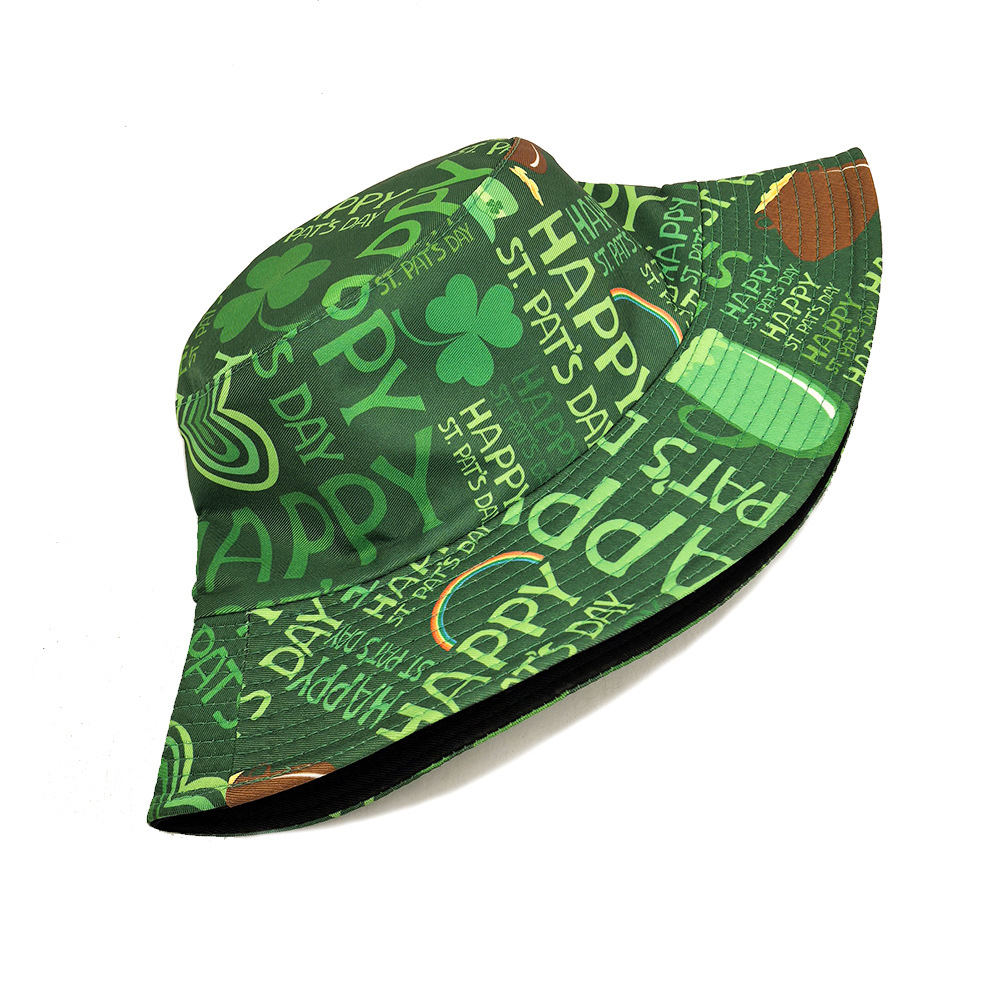 外贸款爱尔兰节装饰印花渔夫帽遮阳盆帽三叶草圣帕特里克节帽子女