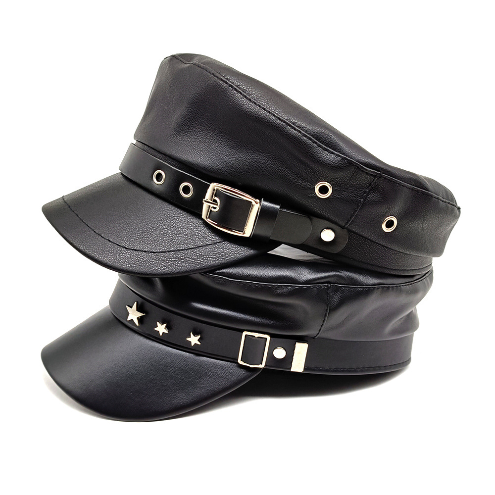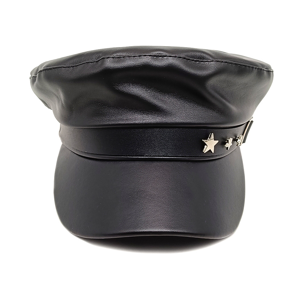 高品质pu皮黑色八角帽英伦秋冬鸭舌帽子女韩版休闲百搭日系报童帽