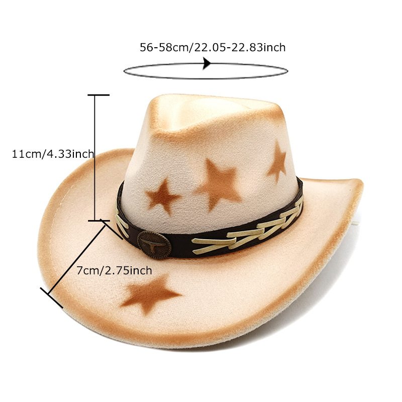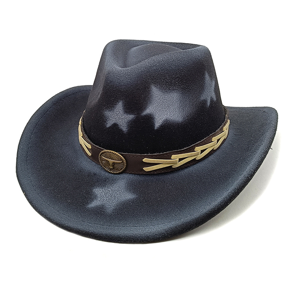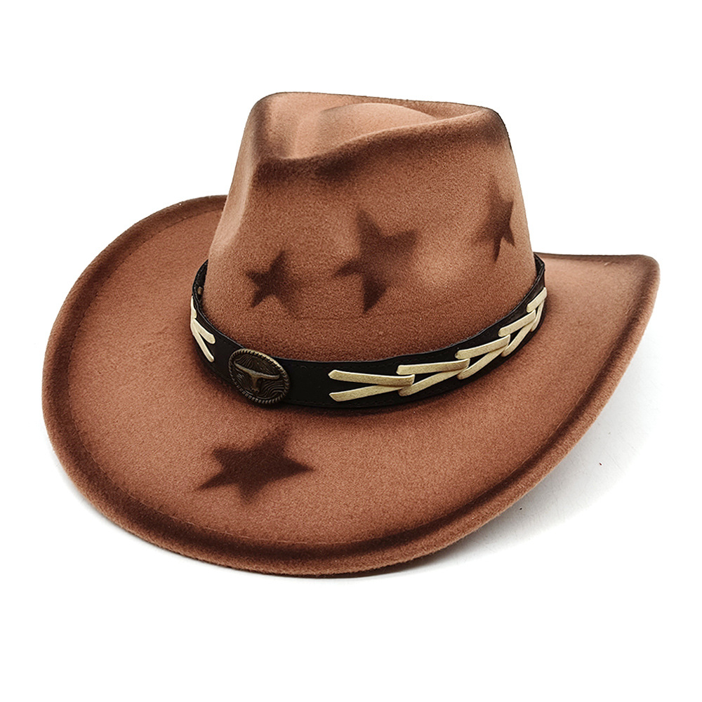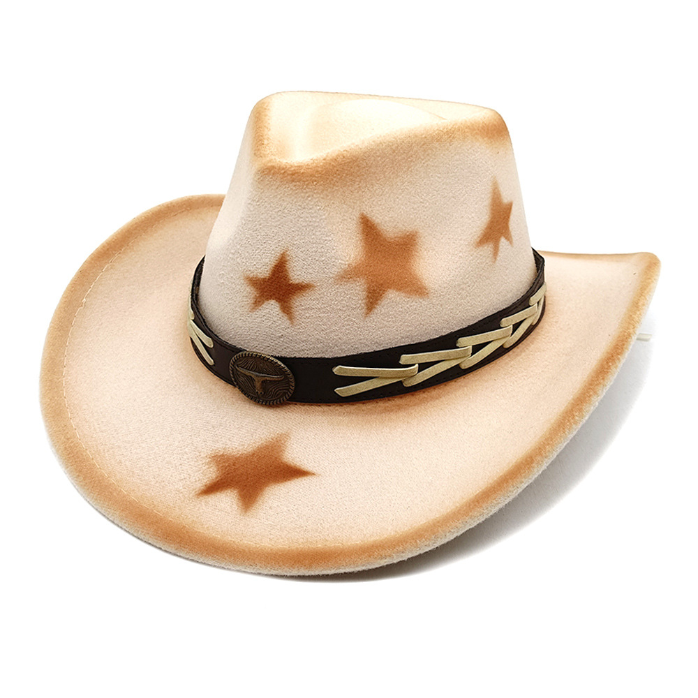 西部牛仔帽渐变色五角星英伦复古帽子欧美户外骑行遮阳爵士礼帽