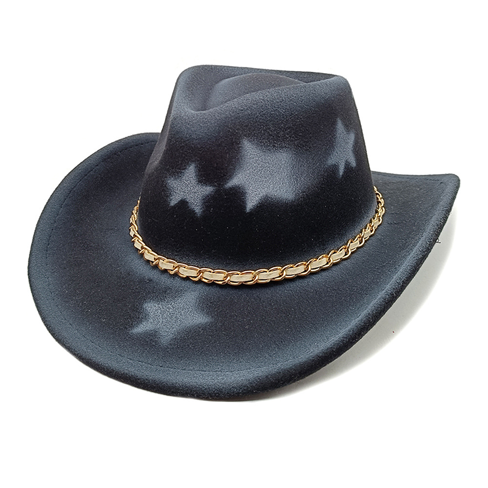欧美英伦风秋冬季男女士新款五角星扎染毛呢爵士帽韩版时尚大檐帽