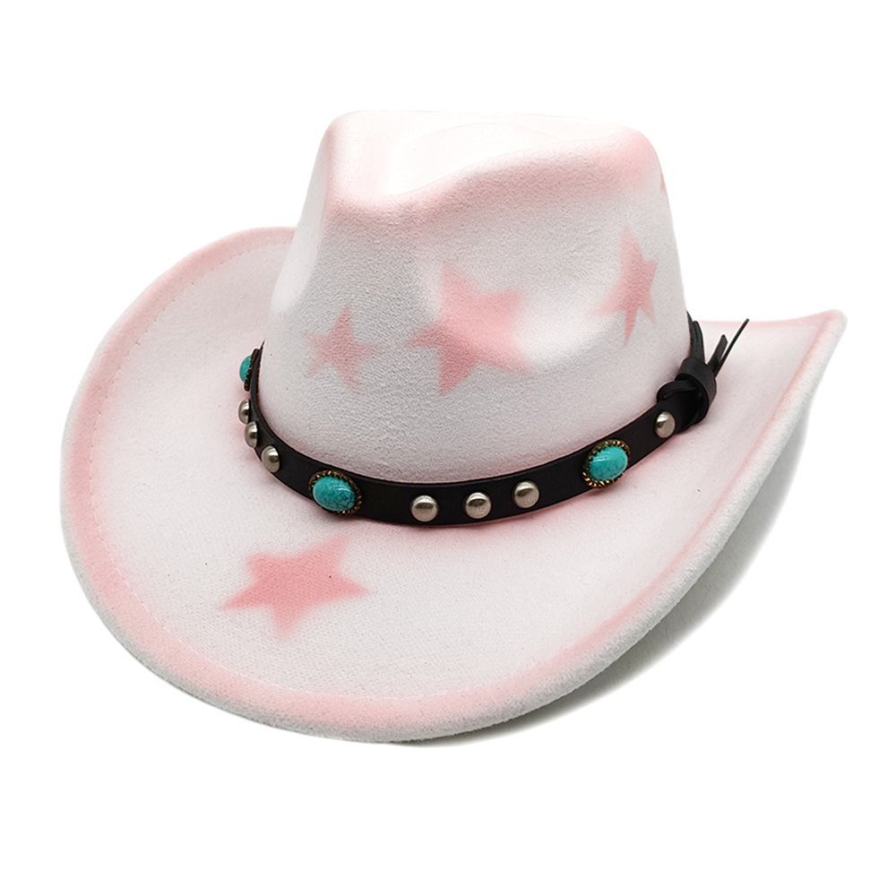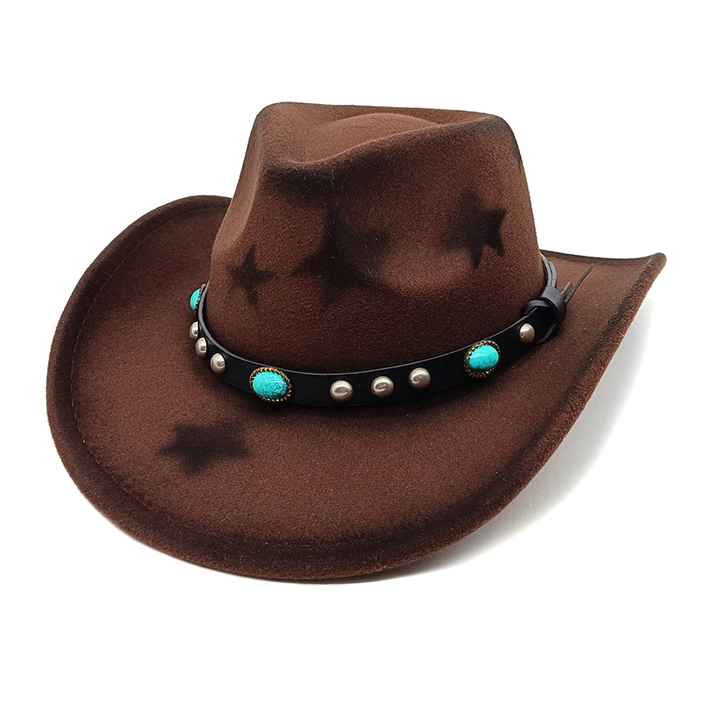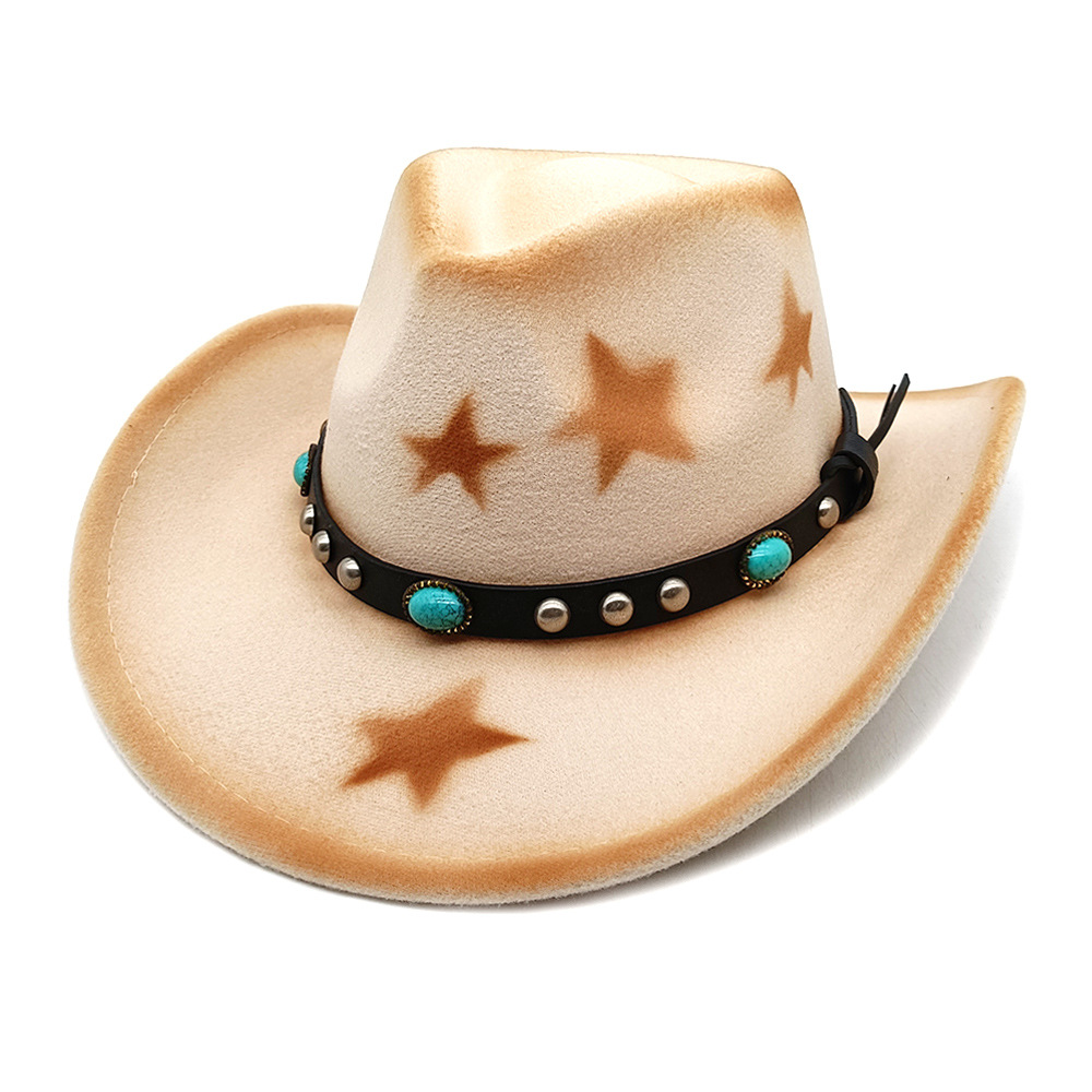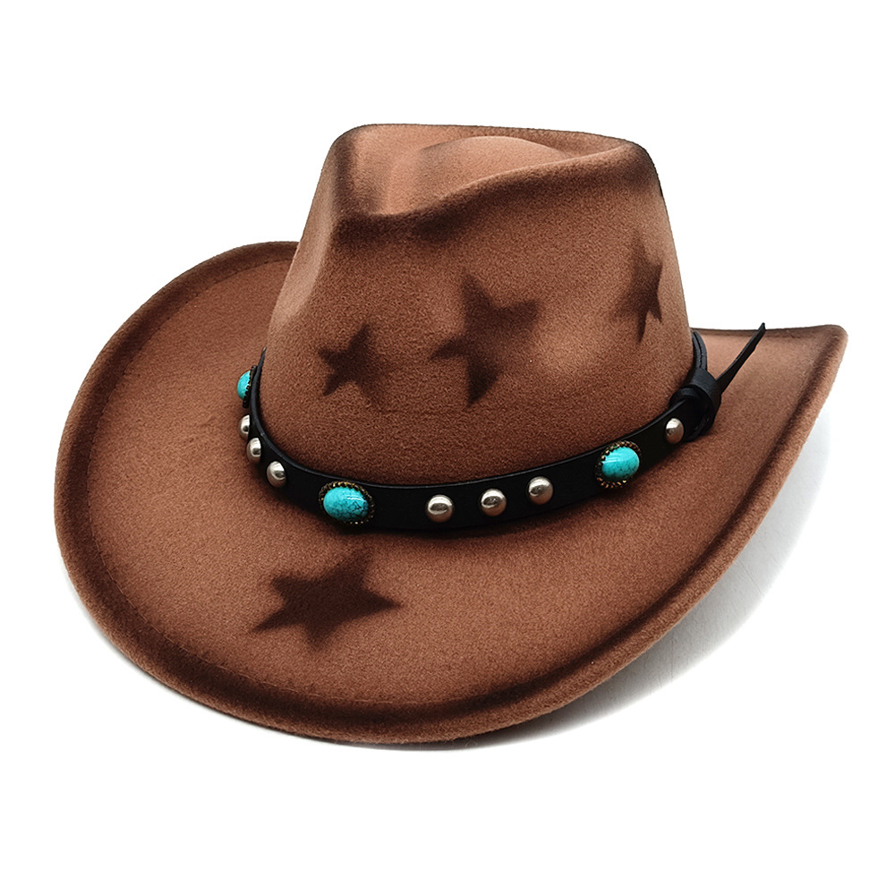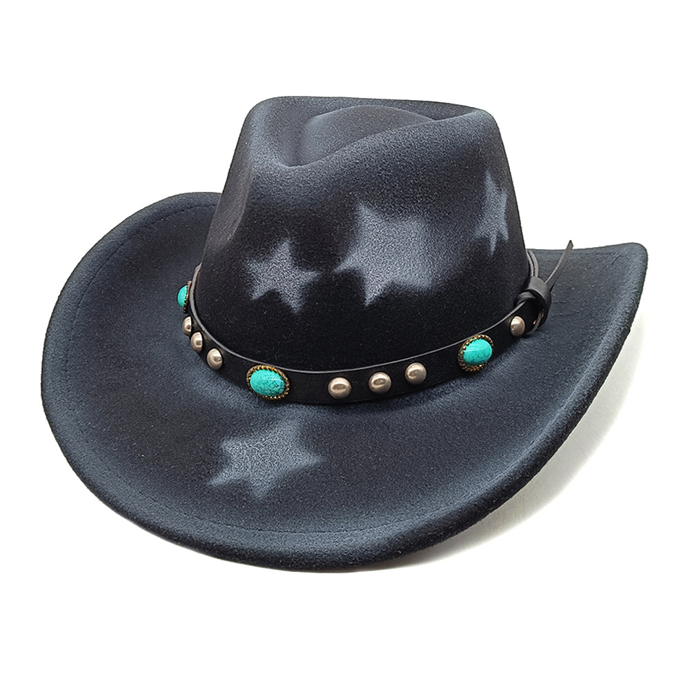 新款民族风藏式西部牛仔帽礼帽秋冬男女毡帽铆钉翘边爵士帽帽子