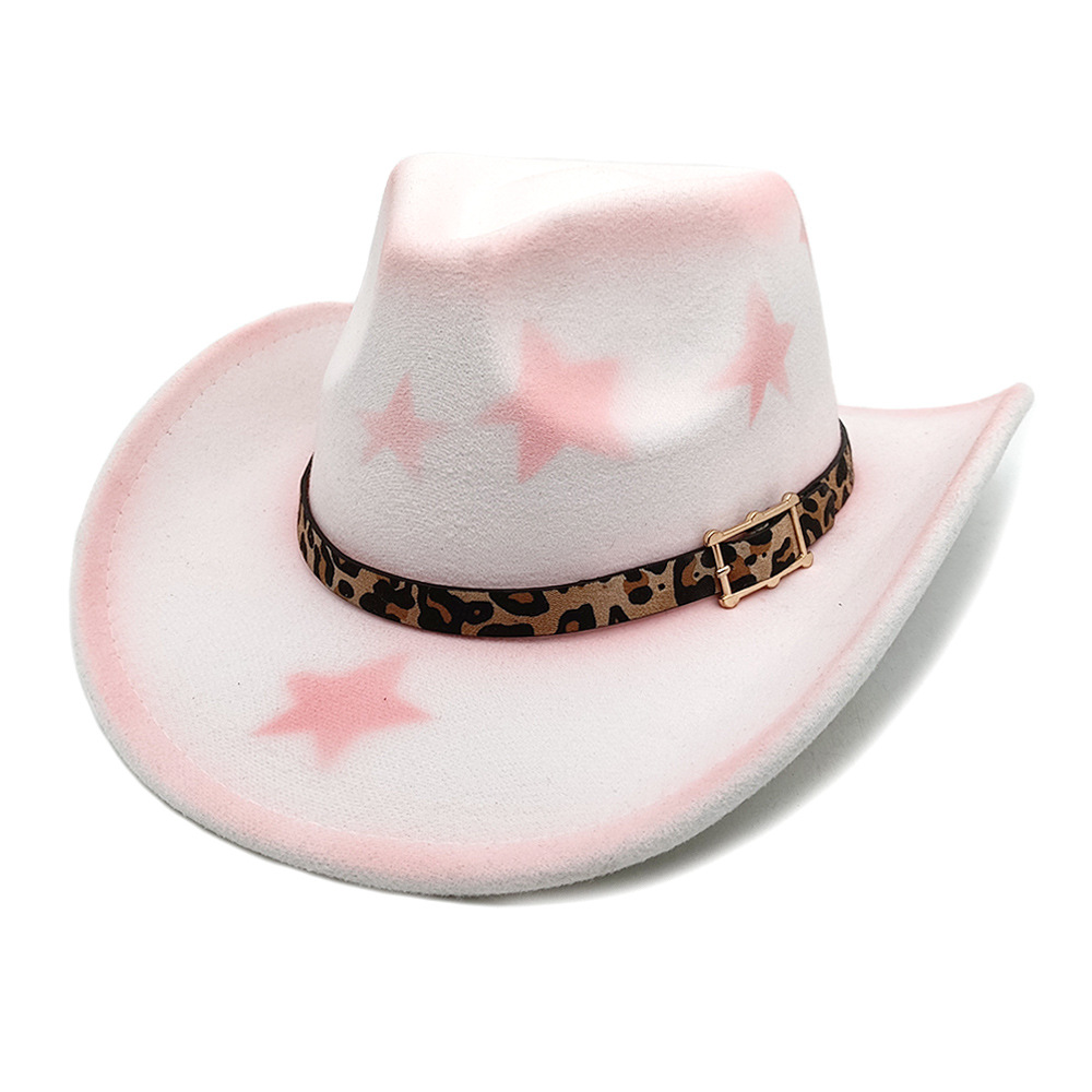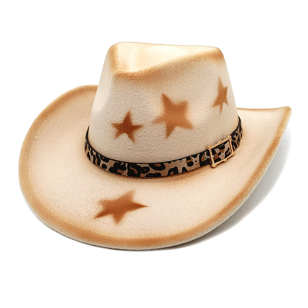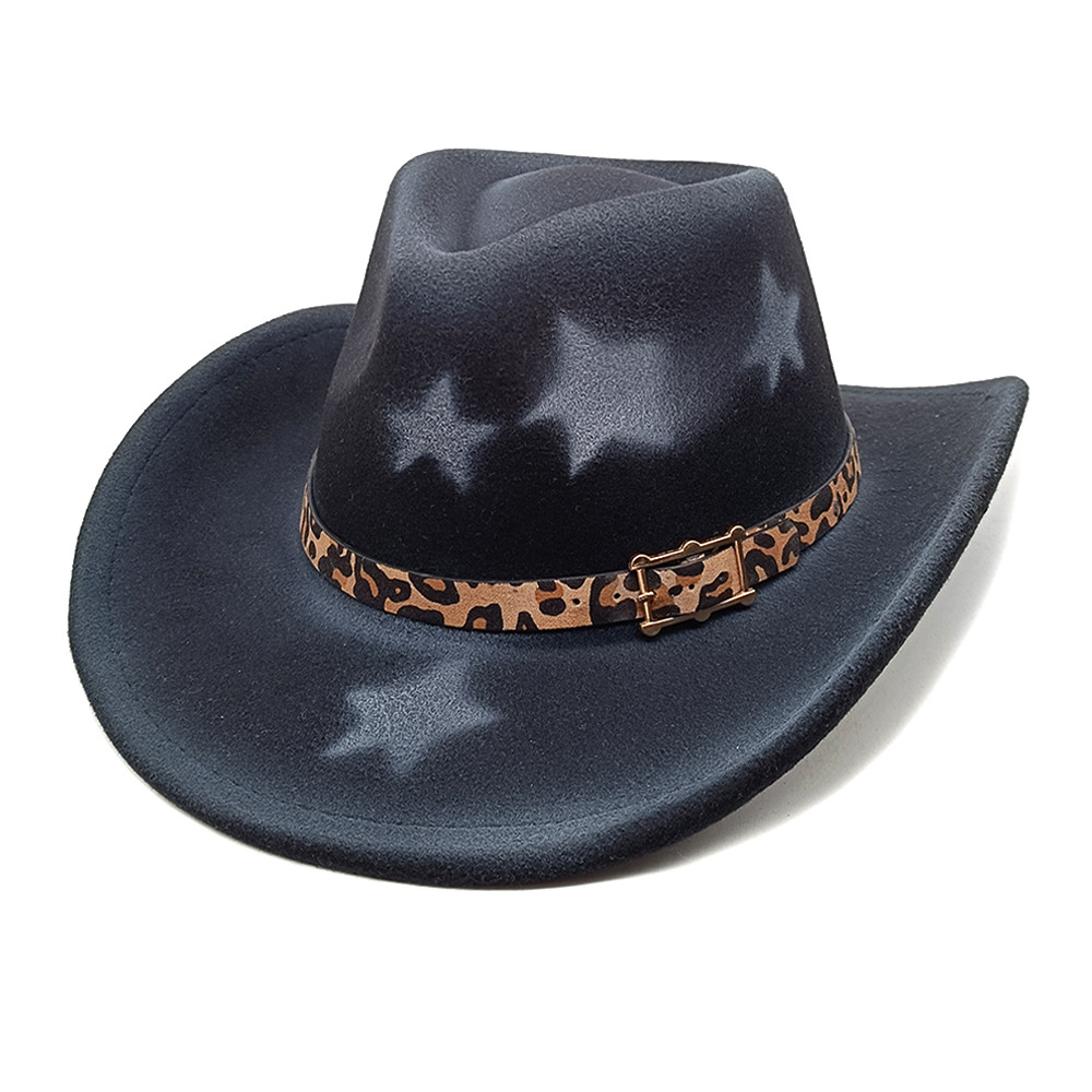 亚马逊新款少数民族帽跨境豹纹皮带帽男士女士情侣帽西部牛仔礼帽