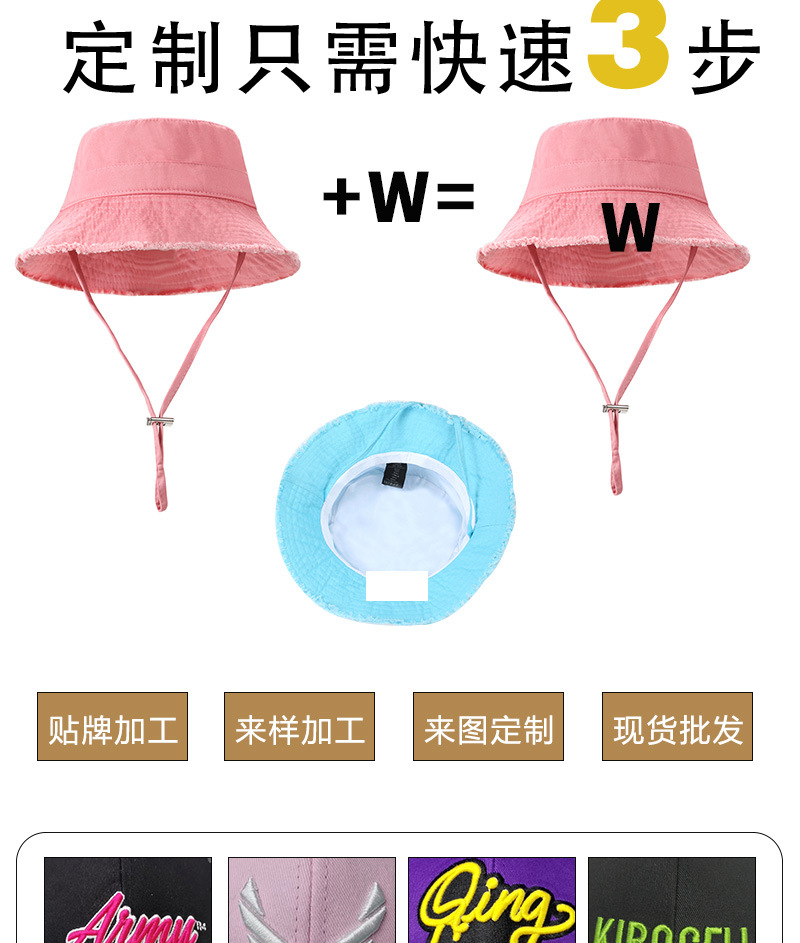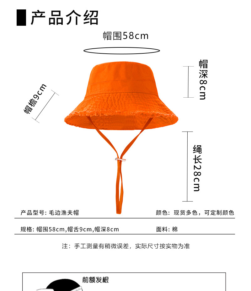 定制户外防晒水洗做旧渔夫帽男女时尚百搭纯色毛边遮阳帽印刷刺绣
