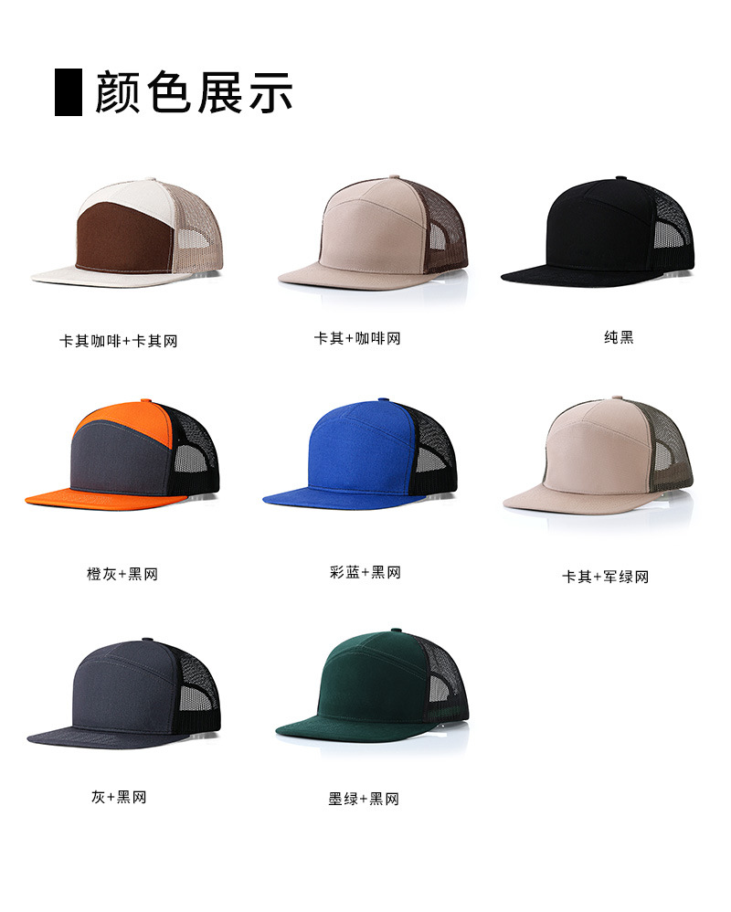 亚马逊7片布网帽子透气卡车司机帽遮阳平檐嘻哈网帽棒球帽定制