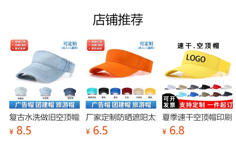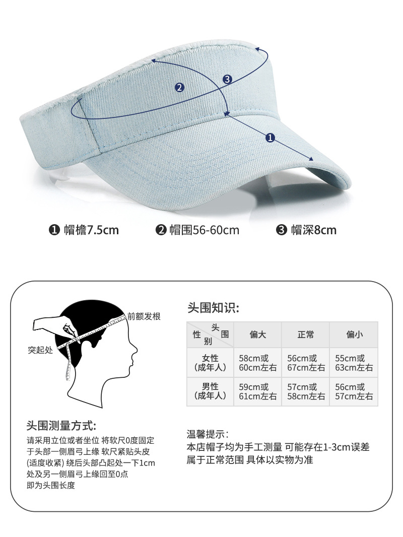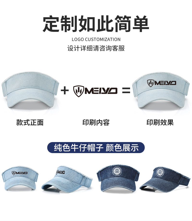 定制光板复古做旧水洗毛边空顶帽男女牛仔运动帽无顶帽印刷刺绣