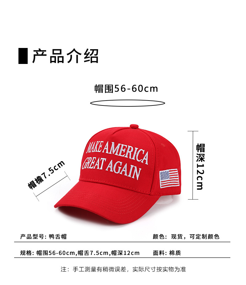欧美经典红色广告棒球帽子跨境亚马逊畅销夏季遮阳网帽刺绣鸭舌帽