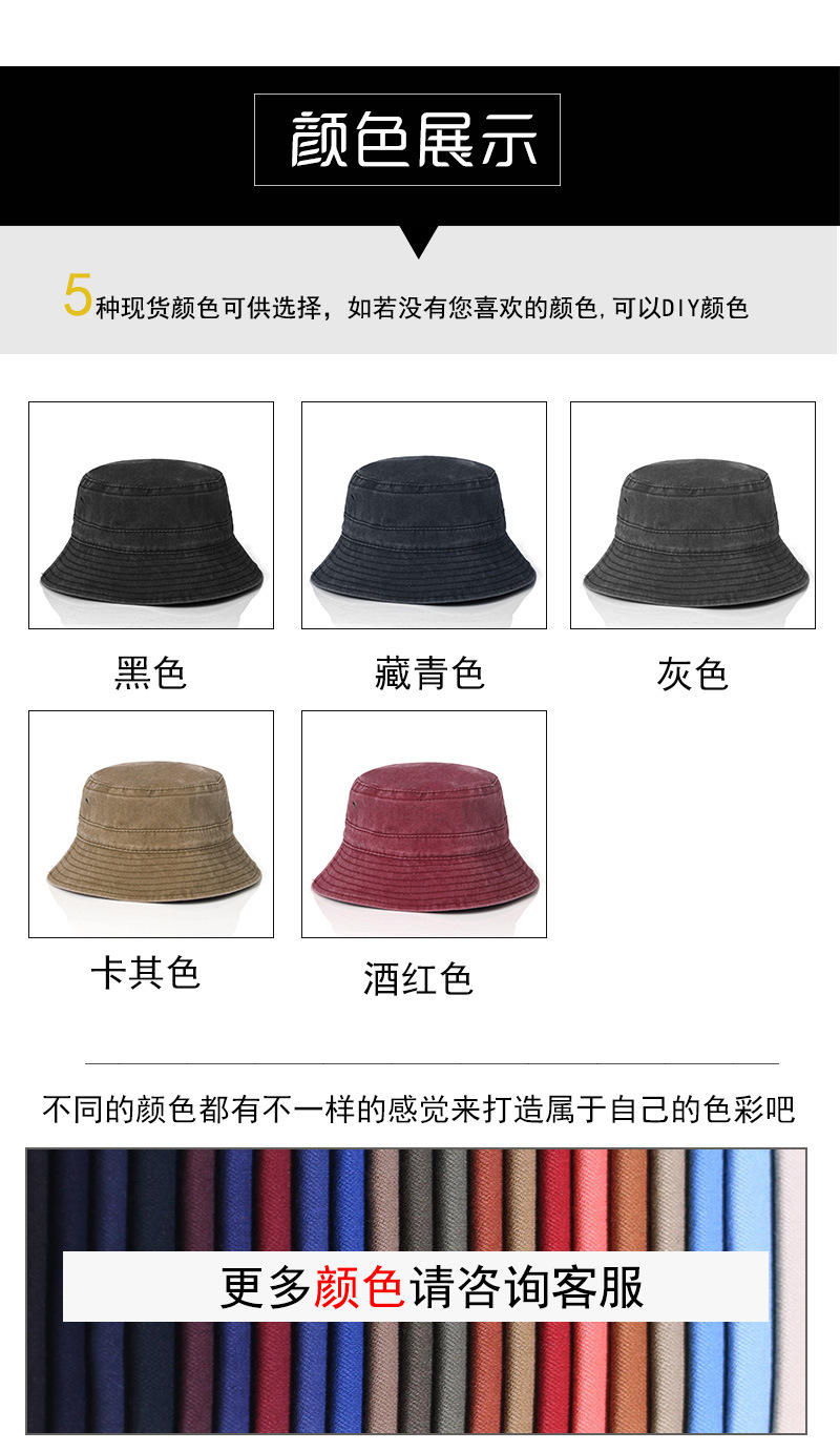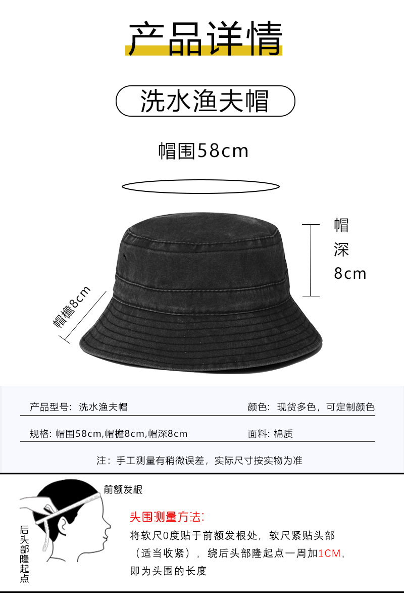 春秋季牛仔布水洗渔夫帽男光板做旧帆布盆帽户外百搭复古牛仔帽女