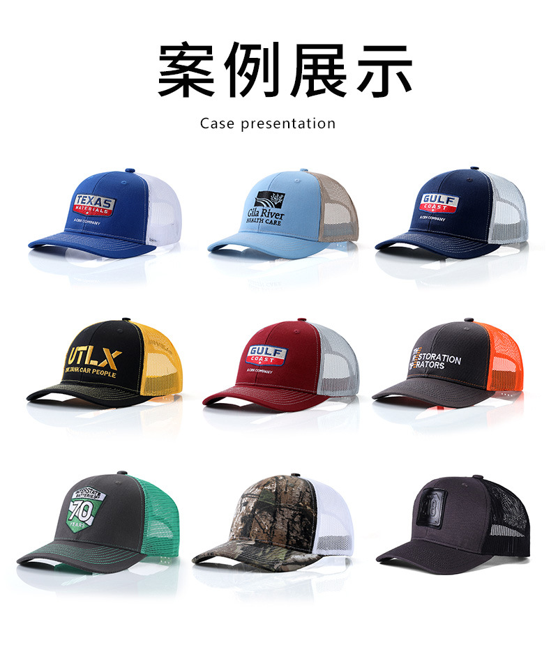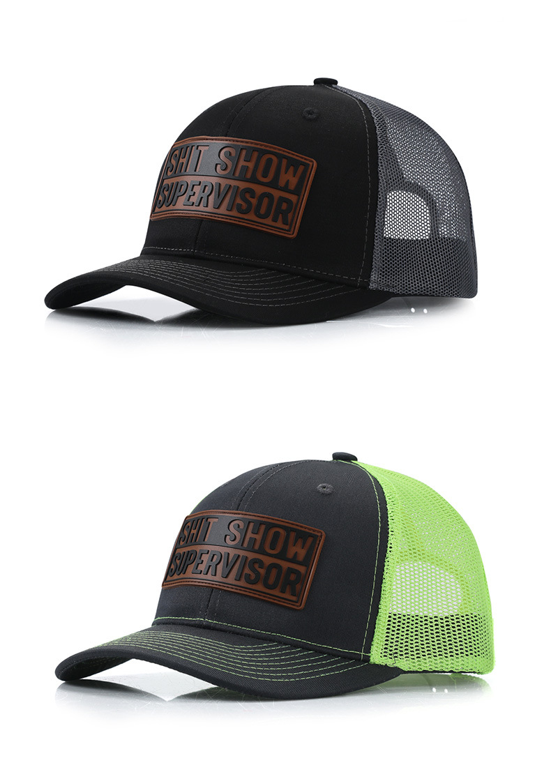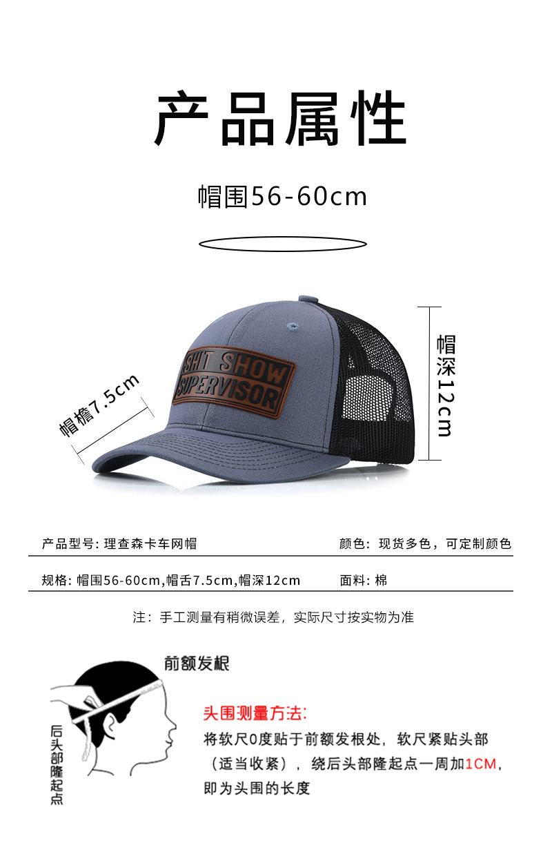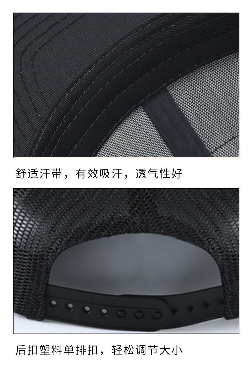 亚马逊新款个性皮标LOGO硬顶棒球帽遮阳防晒透气网帽卡车司机帽