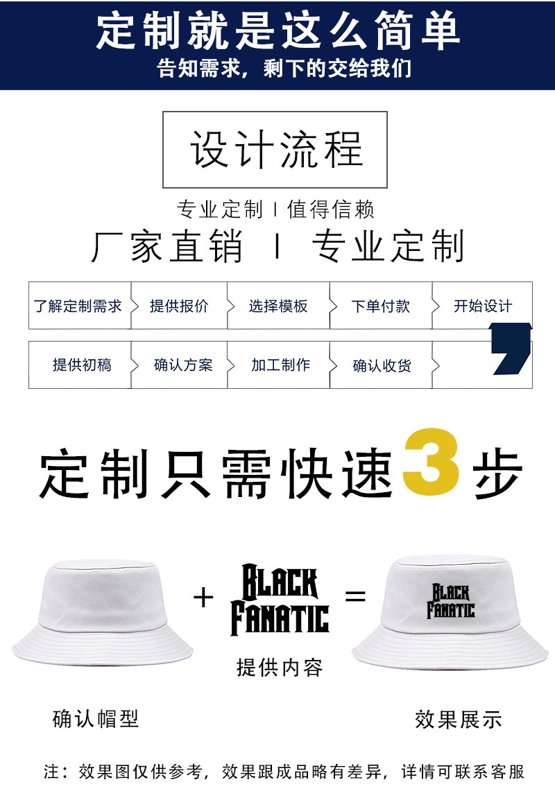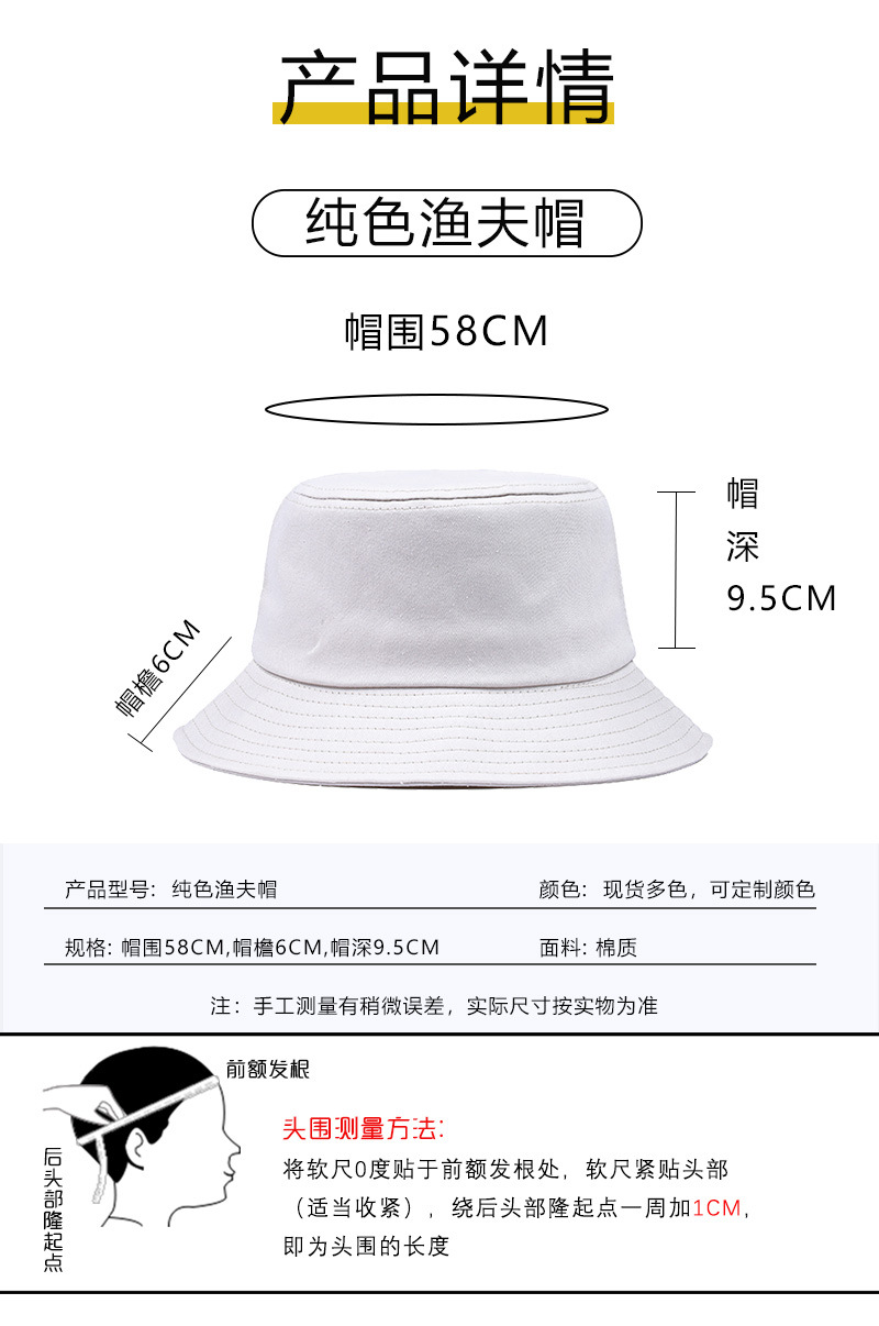 纯色渔夫帽LOGO印刷刺绣简约休闲男女盆帽双层复合平顶防晒帽