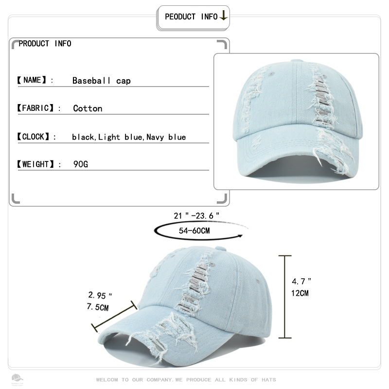 跨境帽子女水洗牛仔布个性时尚破洞男棒球帽户外遮阳帽防晒鸭舌帽