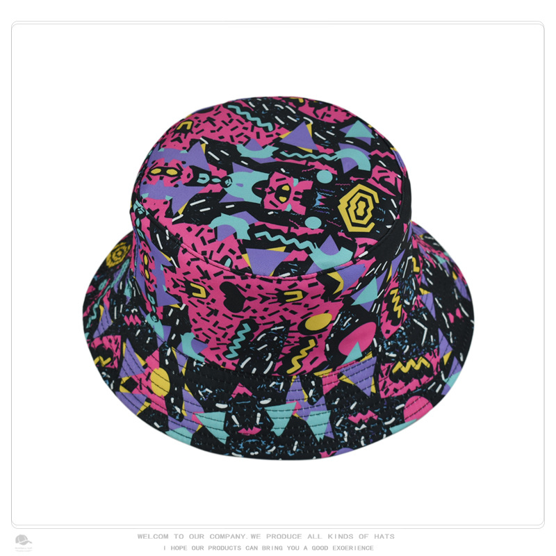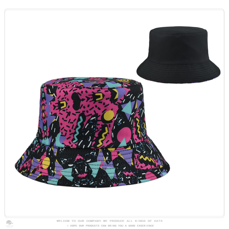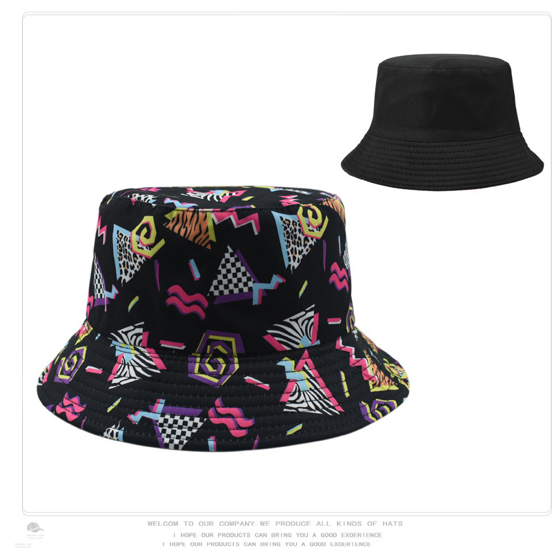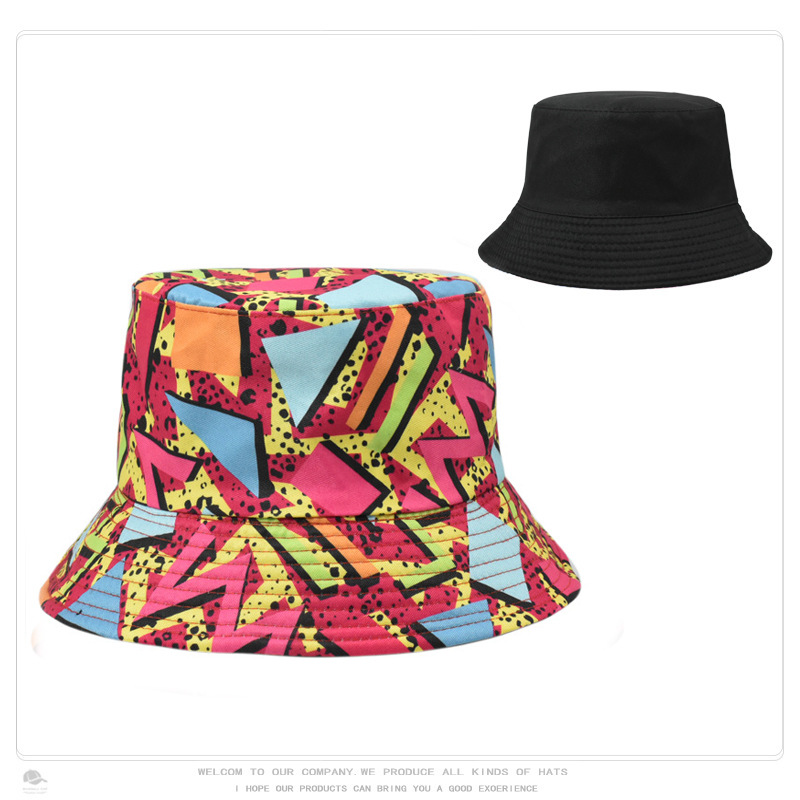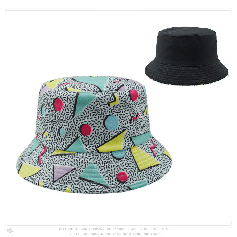 跨境新款几何凌形复古渔夫帽女欧美印花双面百搭盆帽户外遮阳帽子