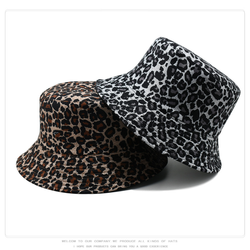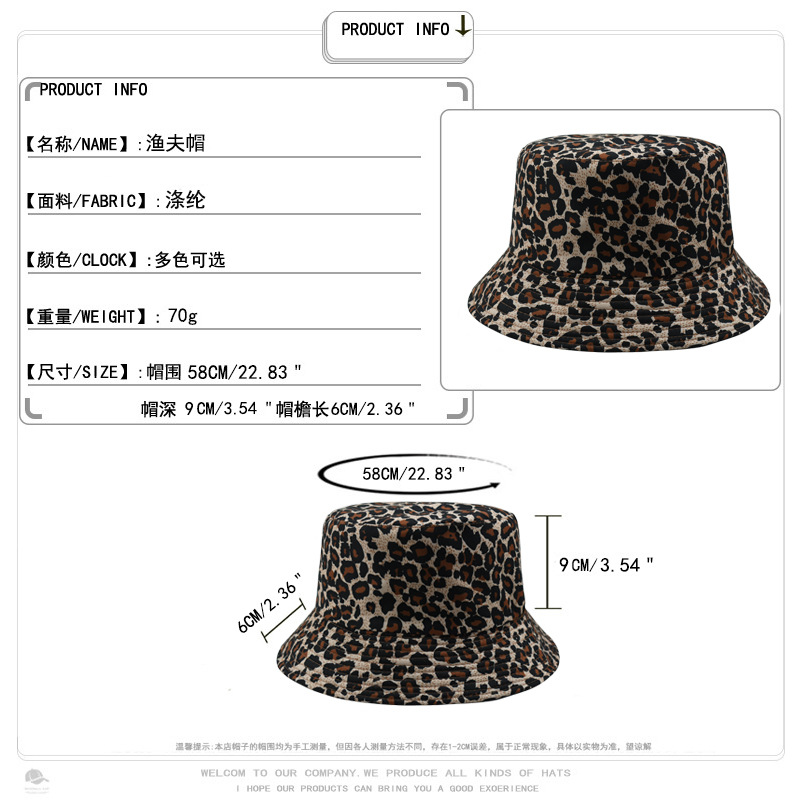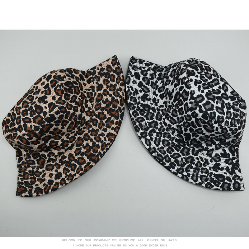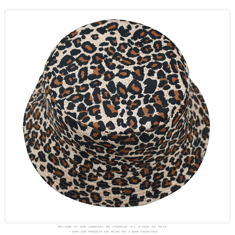 跨境时尚豹纹渔夫帽女复古简约双面盆帽春秋户外休闲防晒遮阳帽男