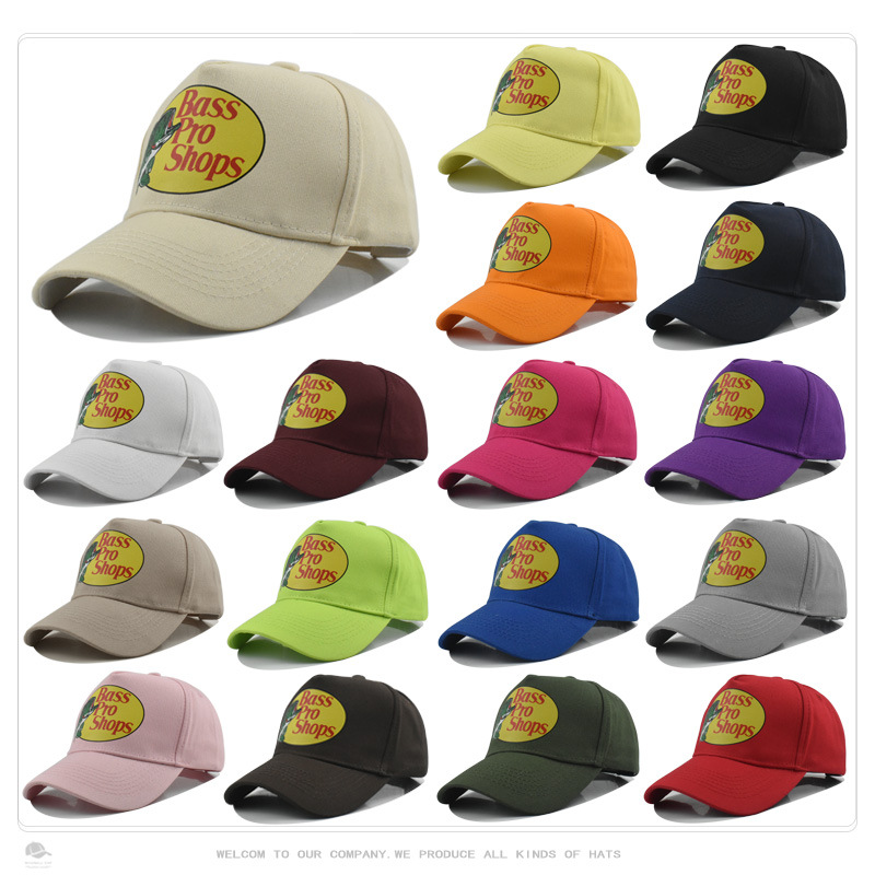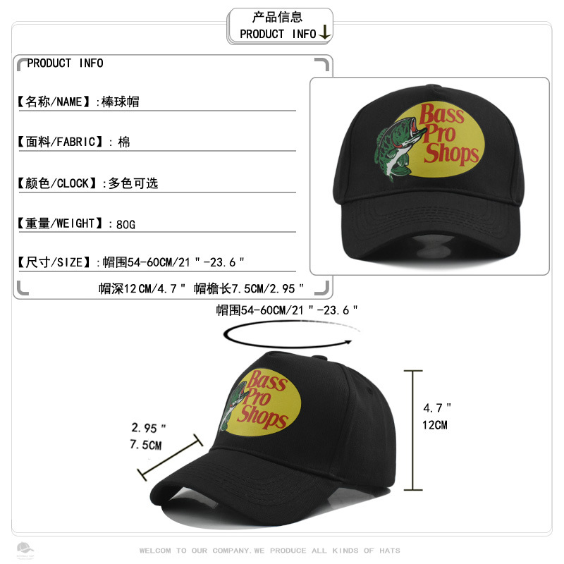 跨境帽子女纯色BassProShops印花棒球帽男户外钓鱼遮阳防晒鸭舌帽