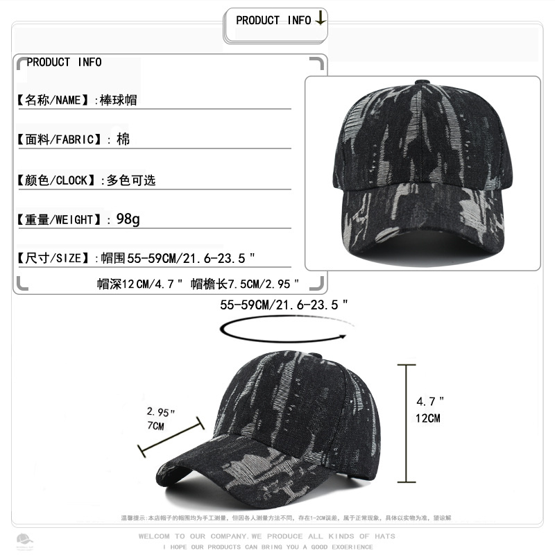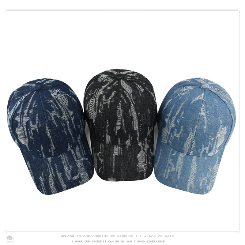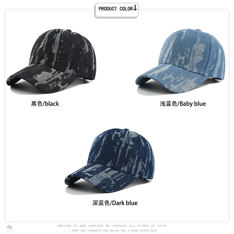 新款时尚街头做旧棒球帽男女四季可戴破洞牛仔帽户外出游遮阳帽子