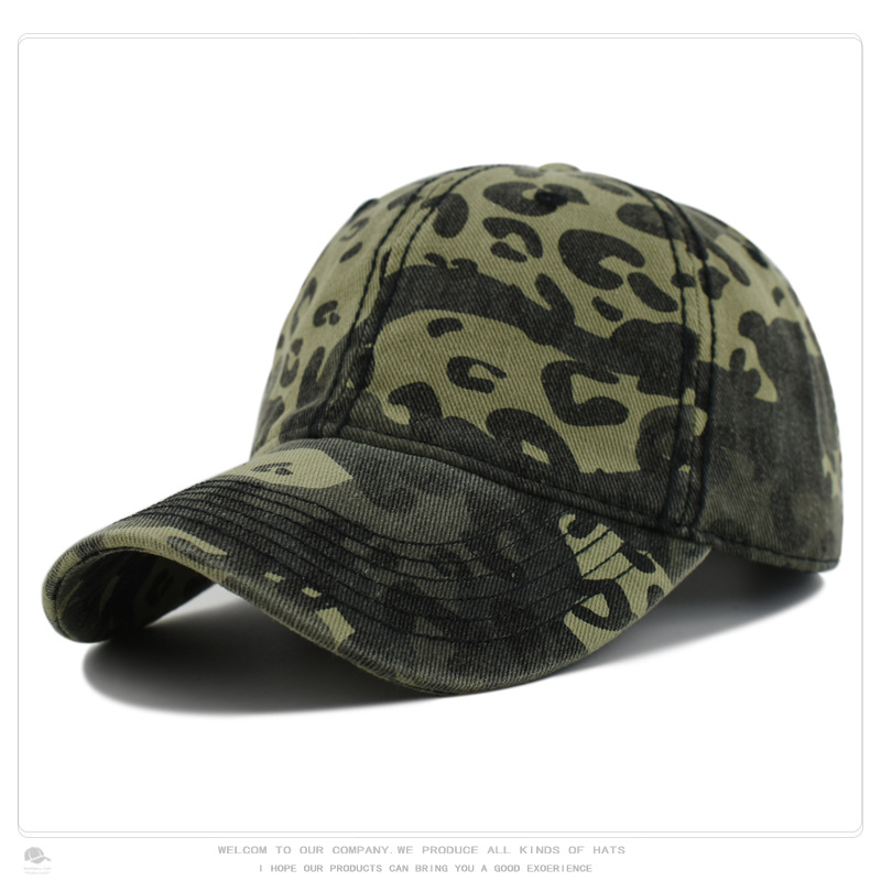 亚马逊新款复古豹纹时尚鸭舌帽显脸小遮阳帽男士印花迷彩棒球帽女