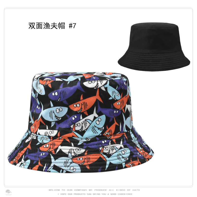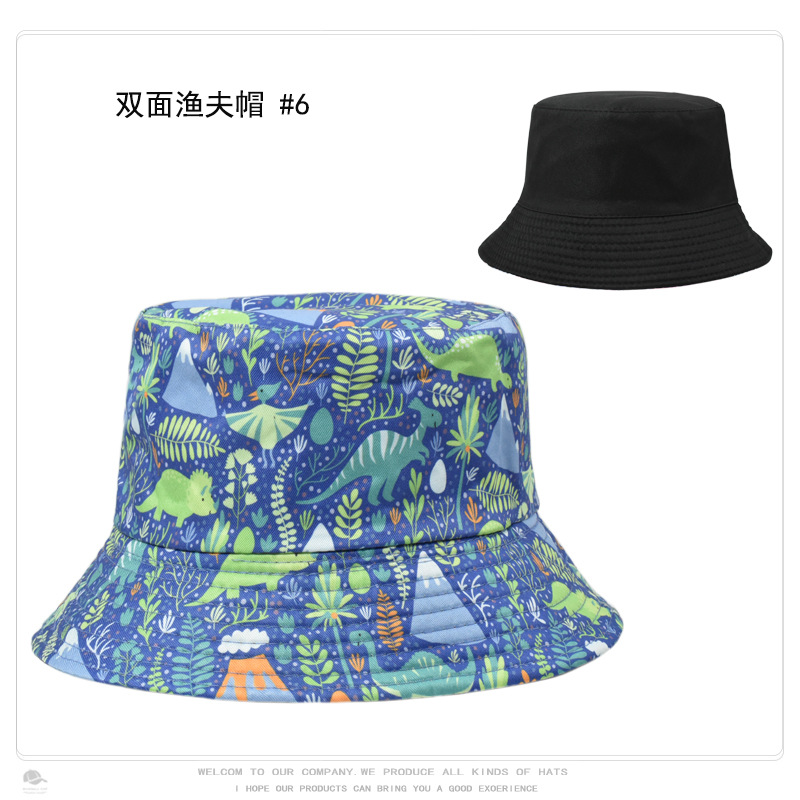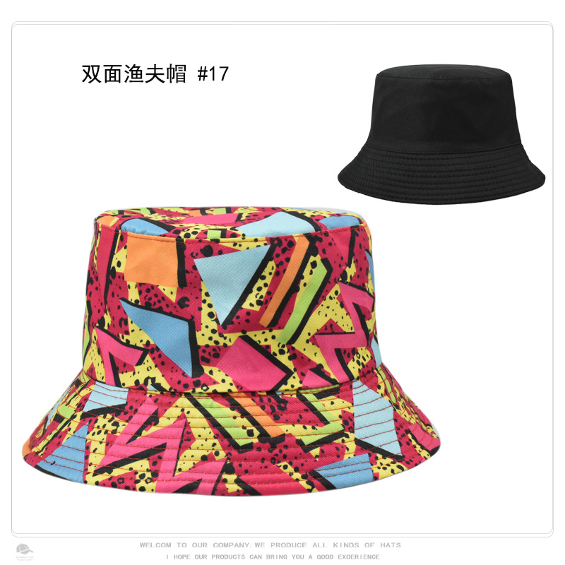 跨境复古时尚复古图案印花渔夫帽女户外旅行遮阳帽双面可戴盆帽