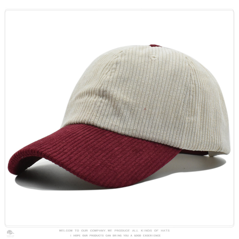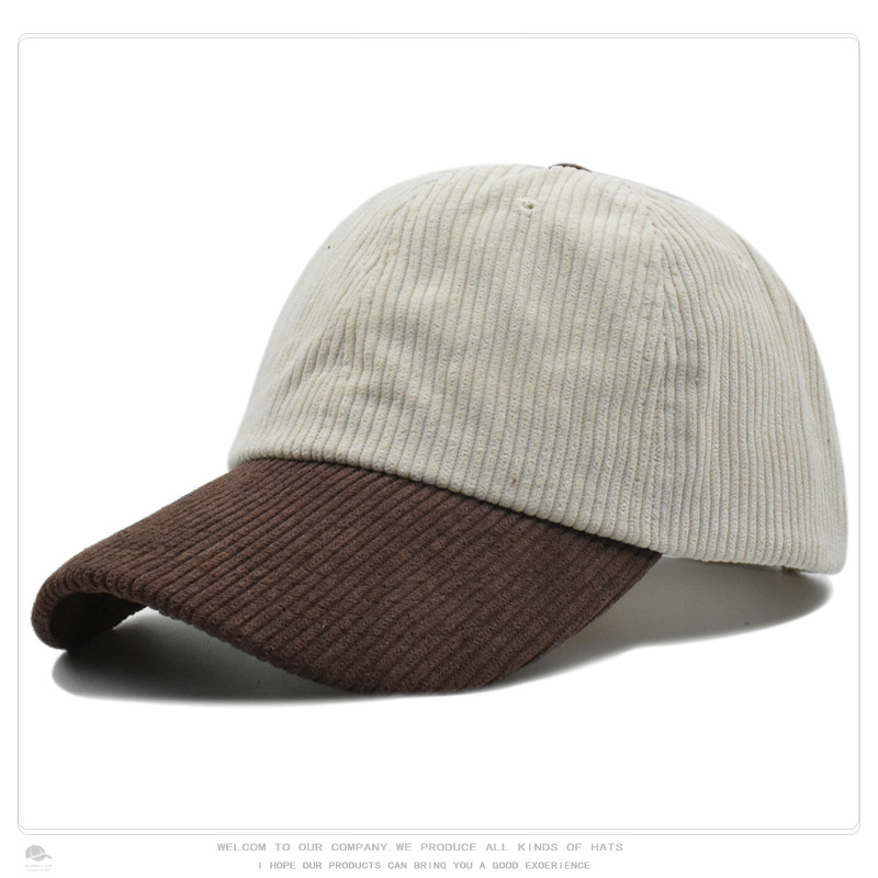 新款光板灯芯绒棒球帽女春秋韩版时尚拼色鸭舌帽情侣街头百搭帽子