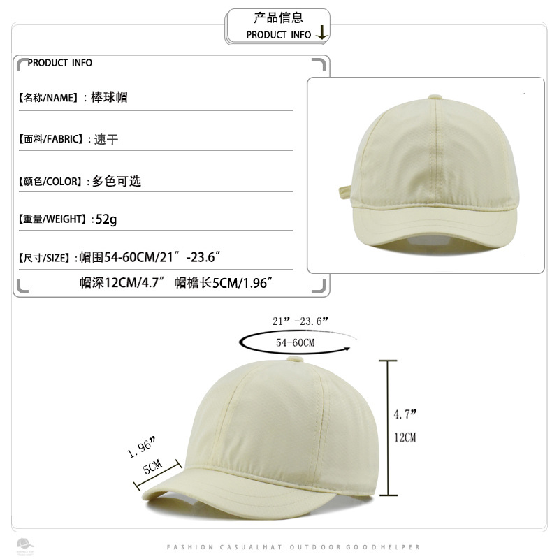 短檐帽子男夏季速干棒球帽小沿鸭舌帽女户外防晒透气遮阳马术帽