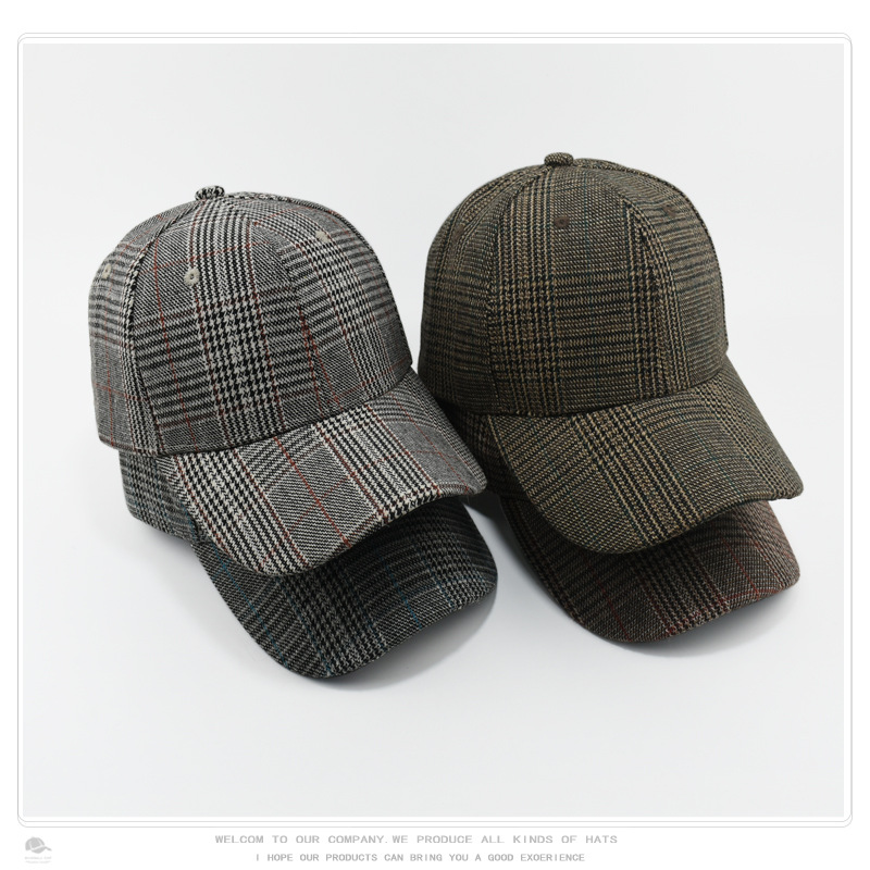 春秋新款帽子男韩版复古千鸟格棒球帽女士时尚百搭遮阳防晒鸭舌帽