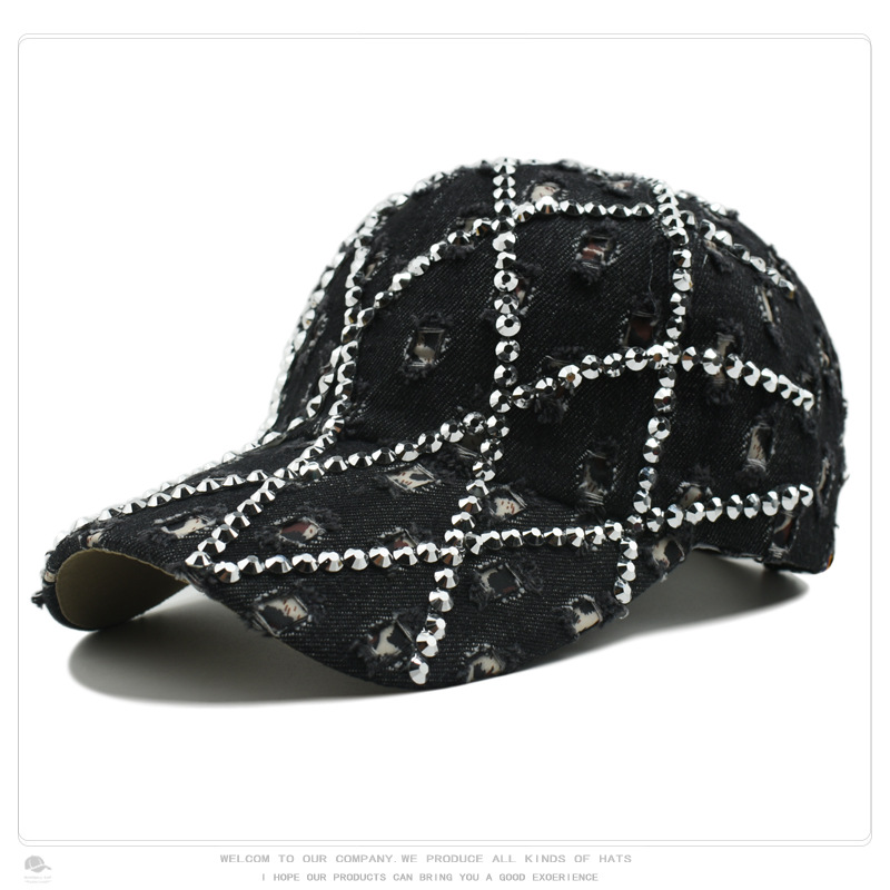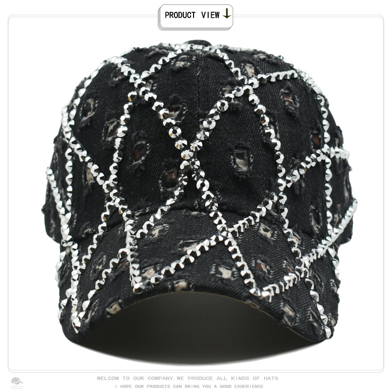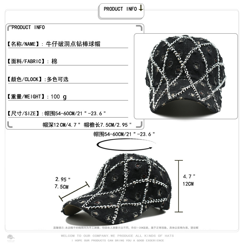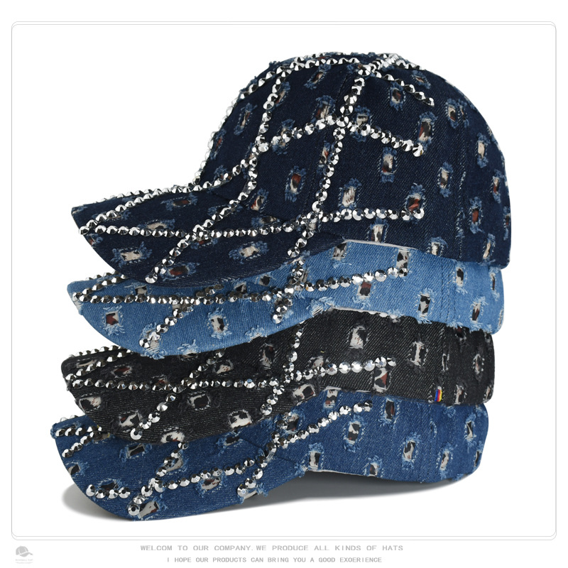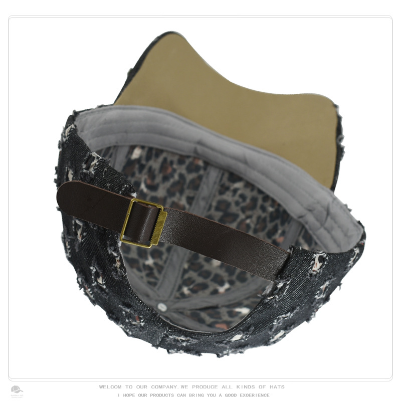 帽子女破洞镶钻牛仔棒球帽豹纹水钻时尚鸭舌帽户外遮阳防晒太阳帽