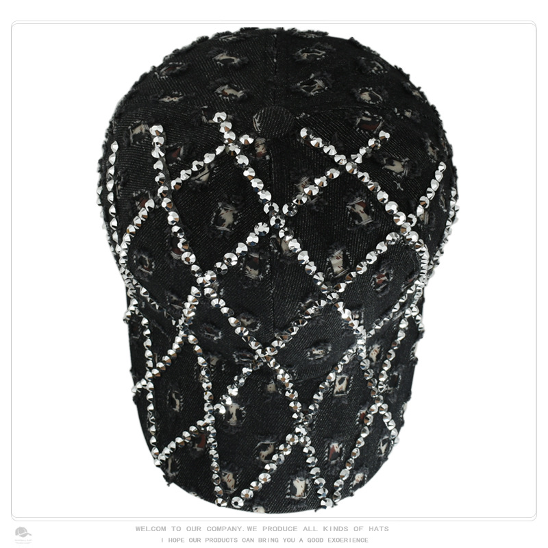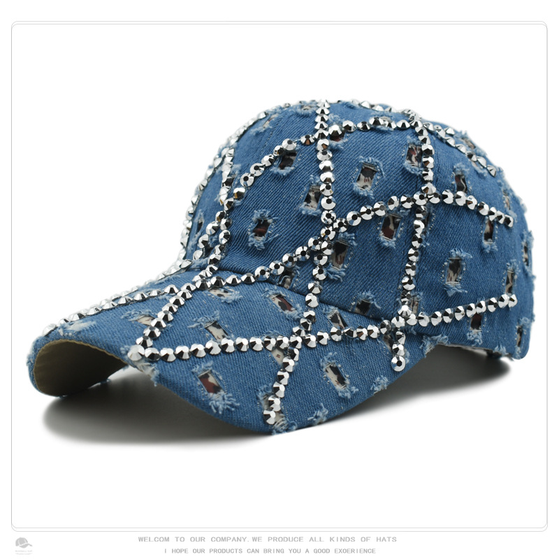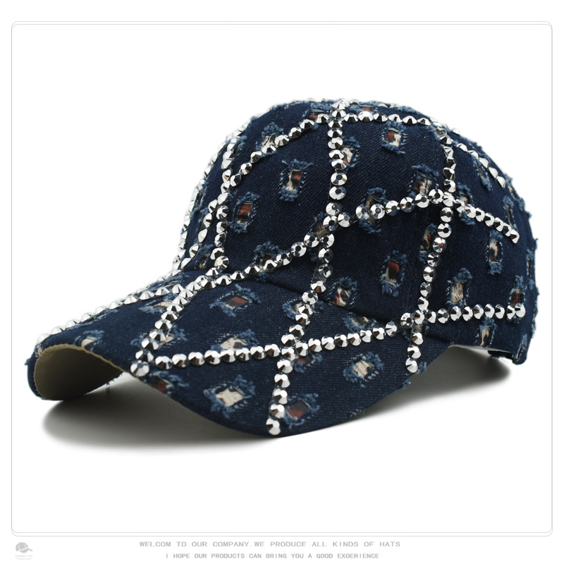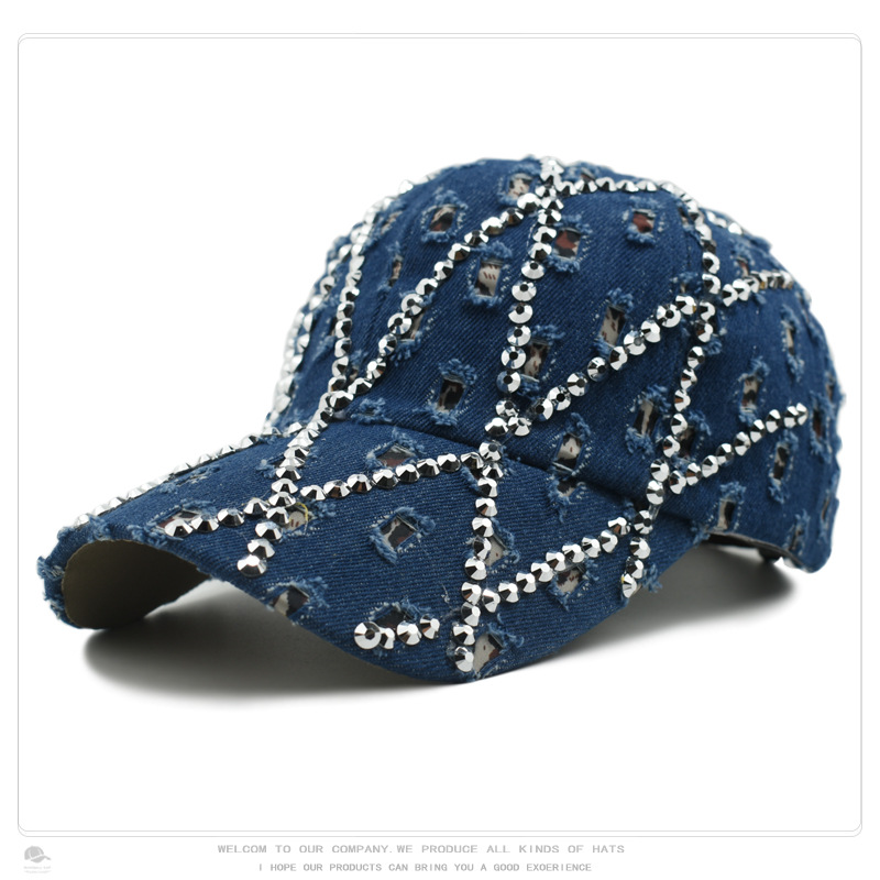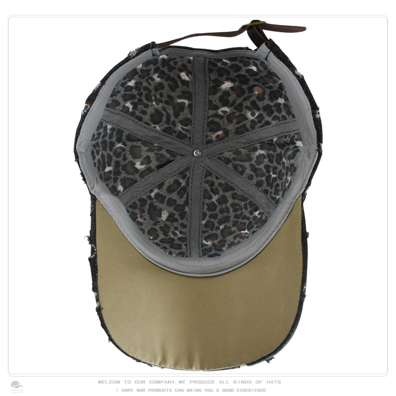 帽子女破洞镶钻牛仔棒球帽豹纹水钻时尚鸭舌帽户外遮阳防晒太阳帽