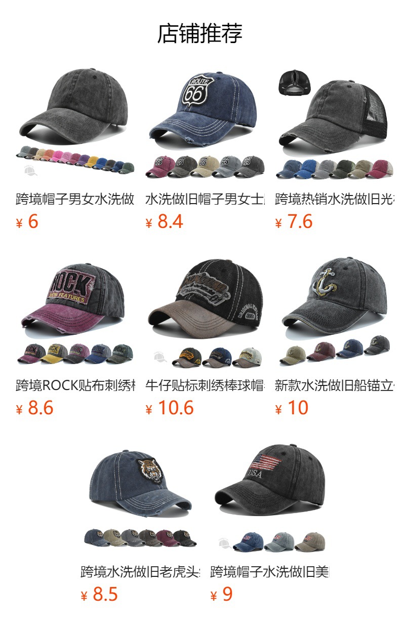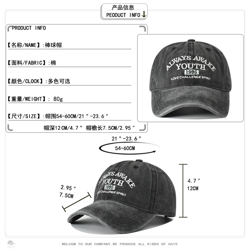 帽子女跨境复古水洗做旧字母刺绣棒球帽男户外出行防晒遮阳鸭舌帽