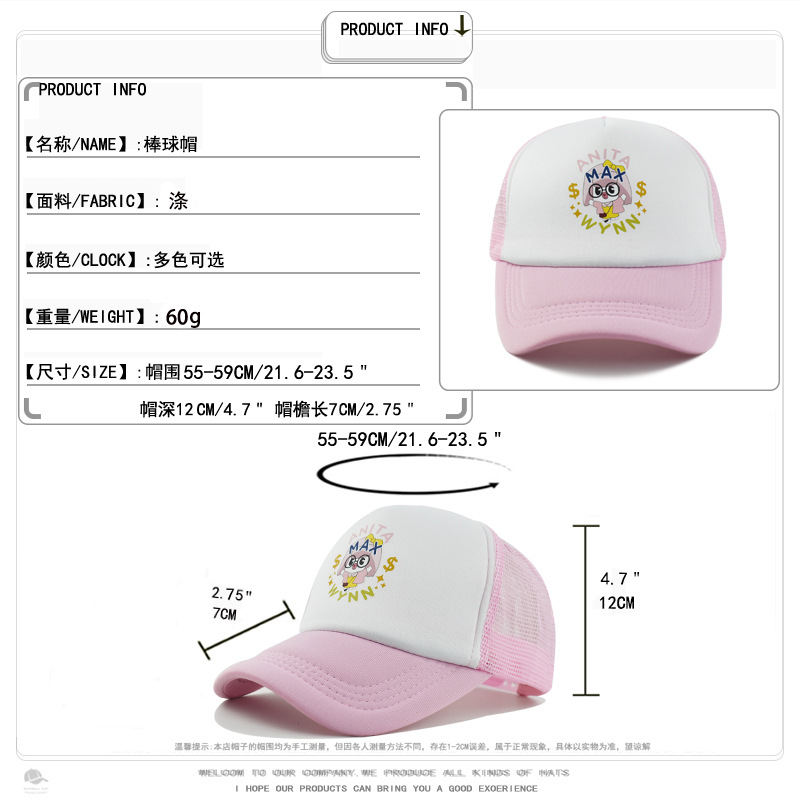 WYNN海绵网帽Drake Anita Max可爱卡通印花棒球帽跨境爆款卡车帽