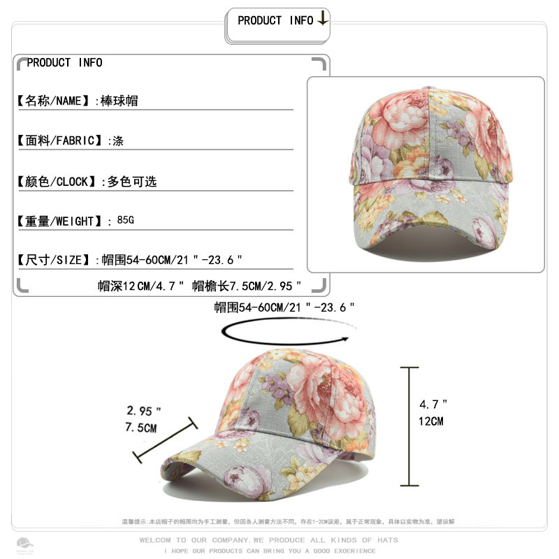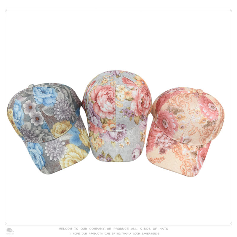 韩版碎花布艺棒球帽女士春夏时尚百搭鸭舌帽户外旅游防晒遮阳帽子
