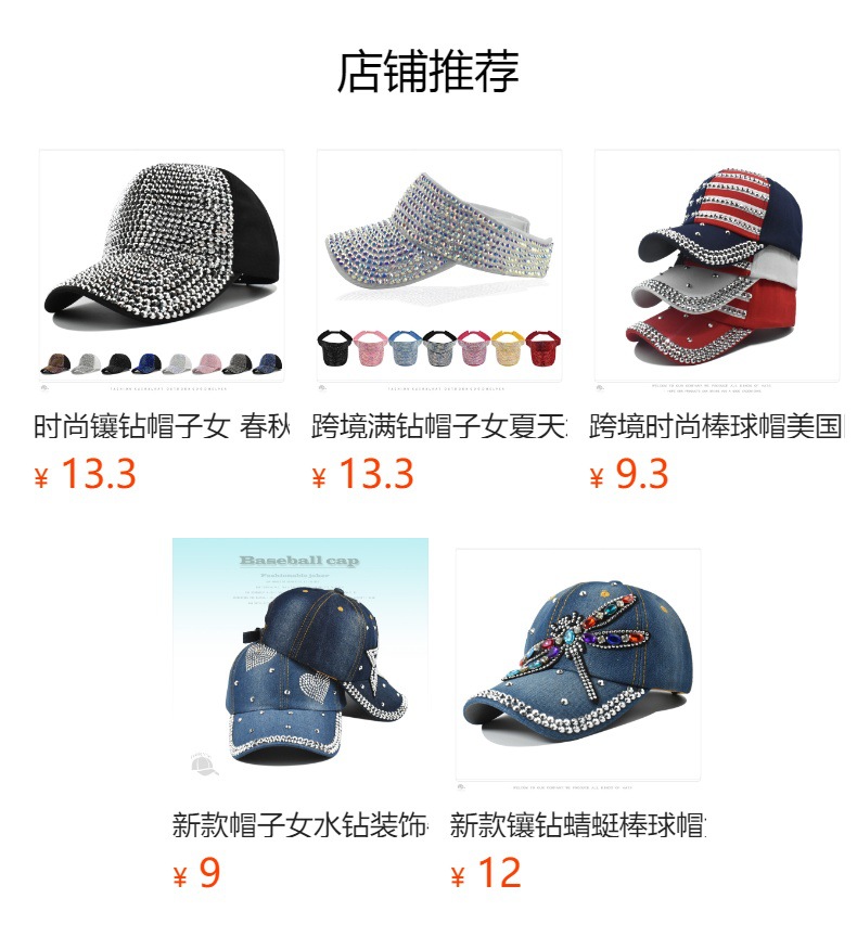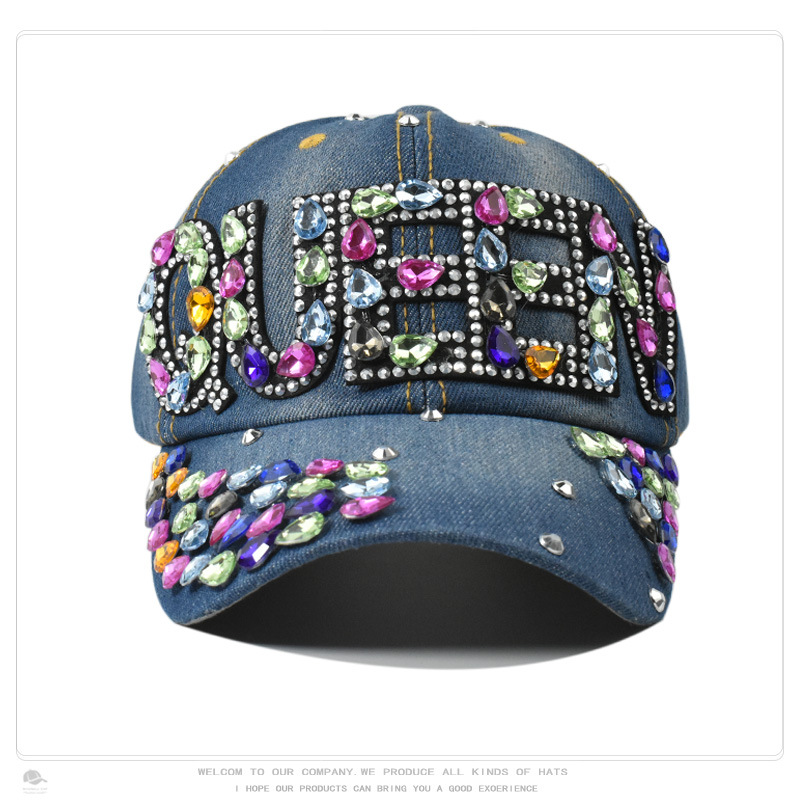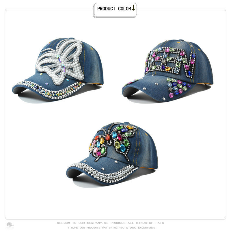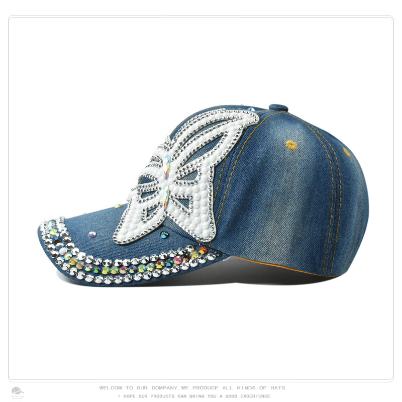 跨境牛仔布点钻棒球帽个性时尚蝴蝶镶钻鸭舌帽户外休闲遮阳鸭舌帽