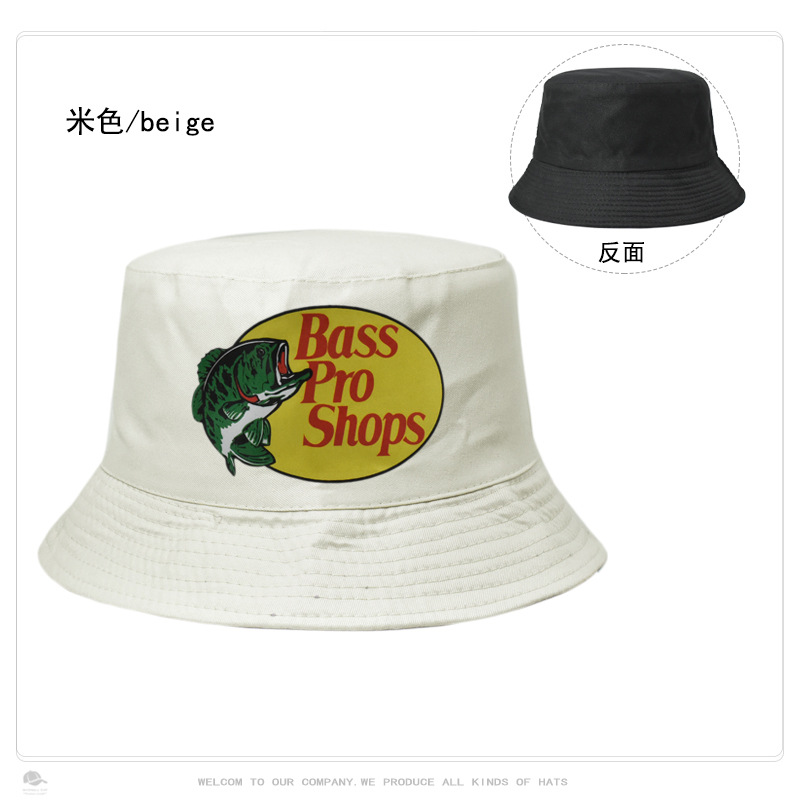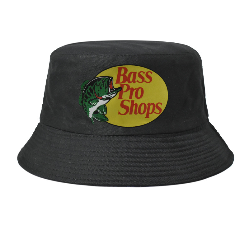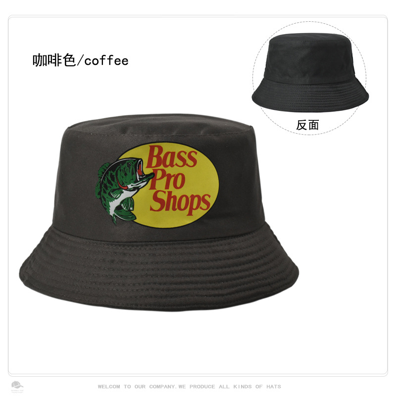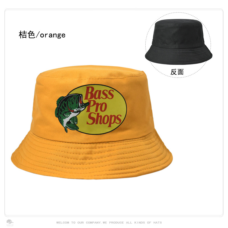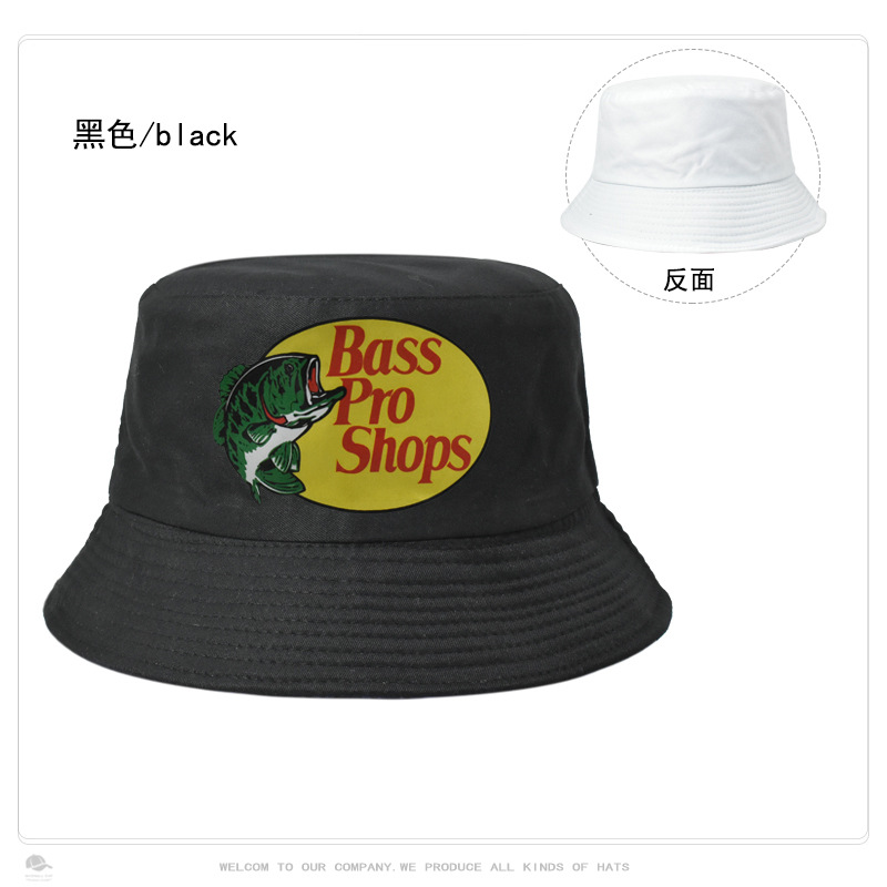 跨境帽子男女纯色Bass Pro Shops印花渔夫帽户外钓鱼遮阳防晒盆帽