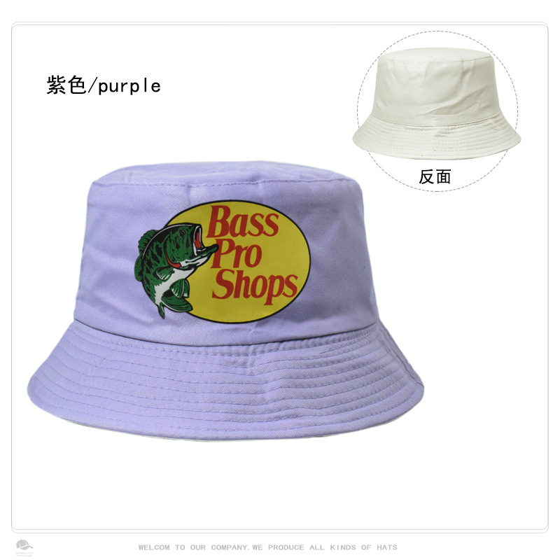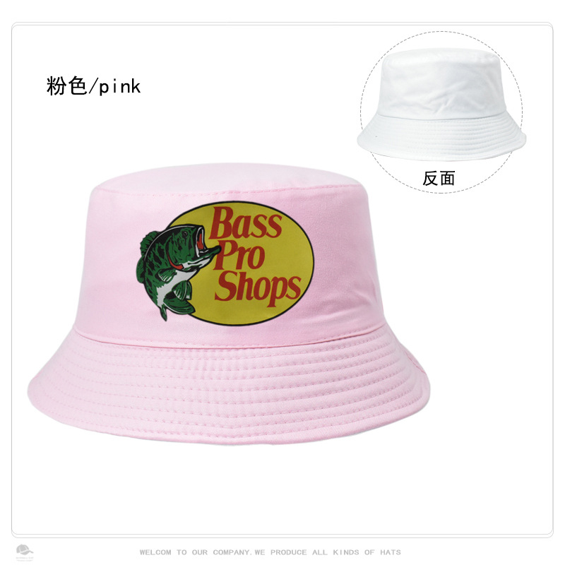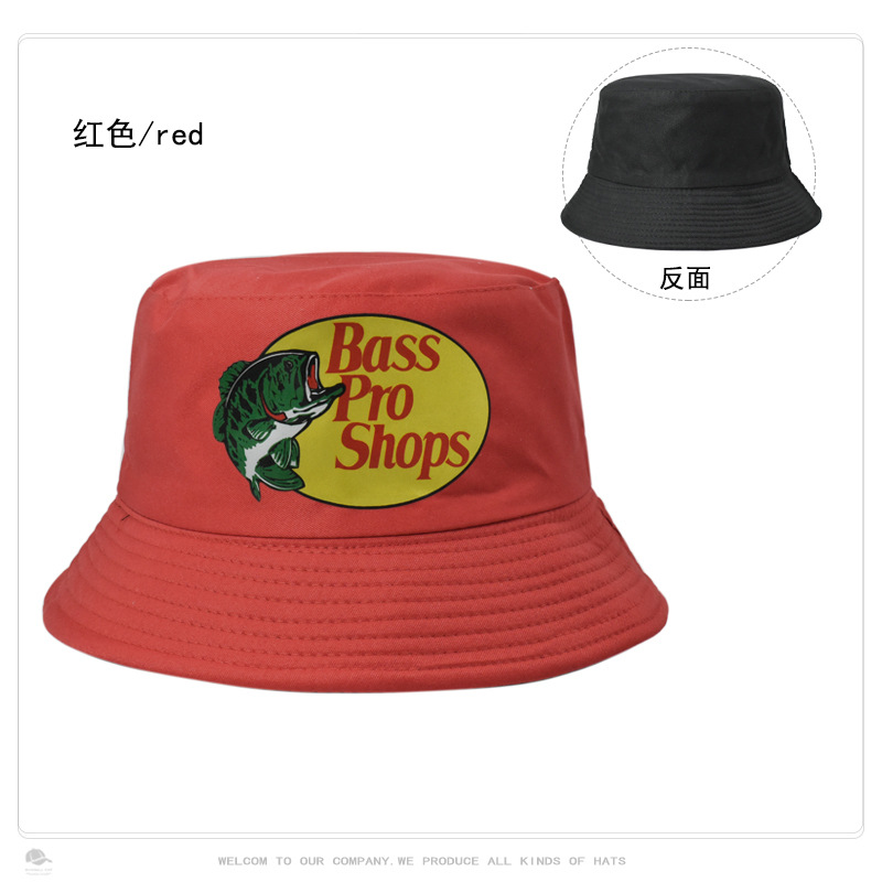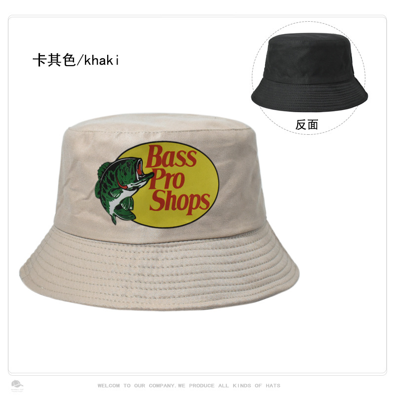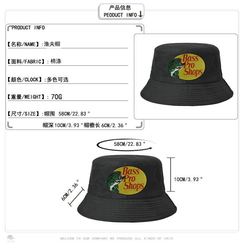 跨境帽子男女纯色Bass Pro Shops印花渔夫帽户外钓鱼遮阳防晒盆帽