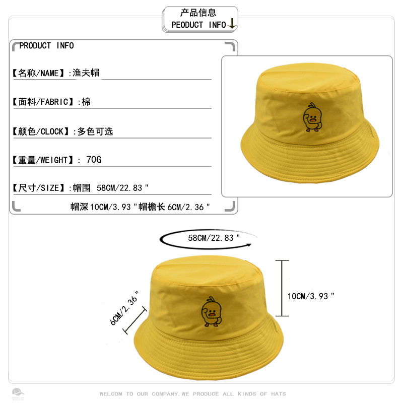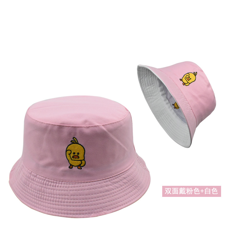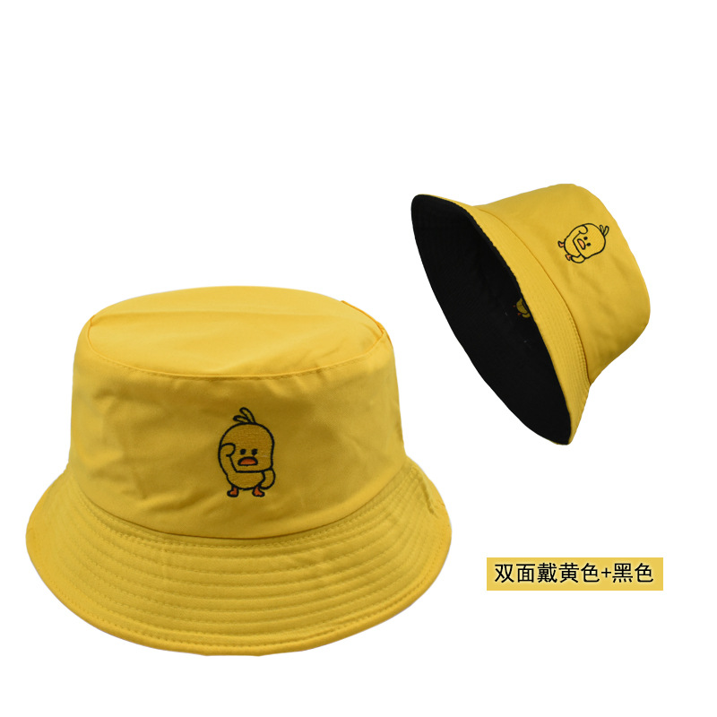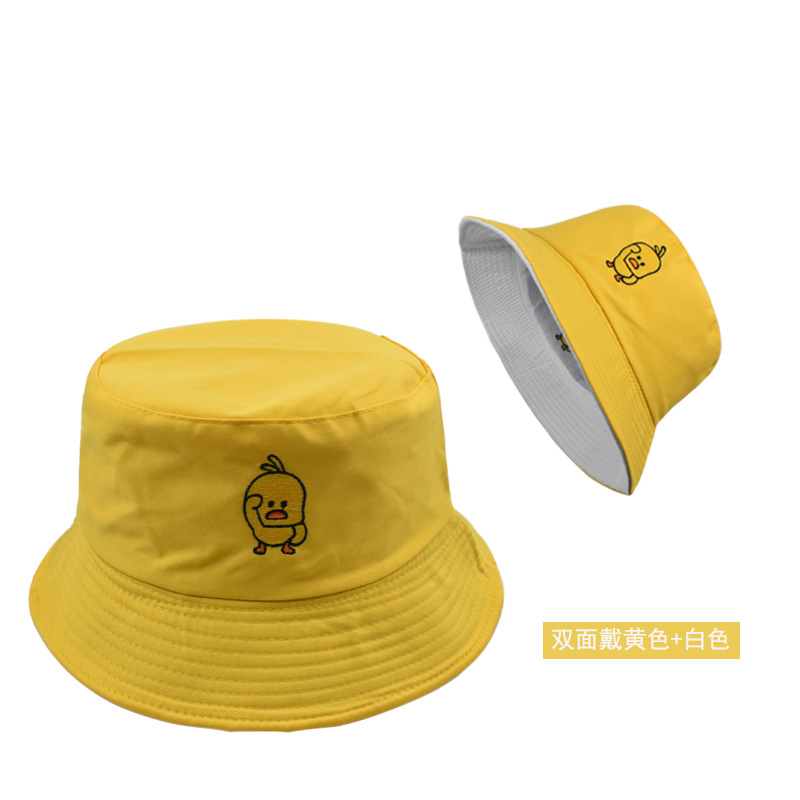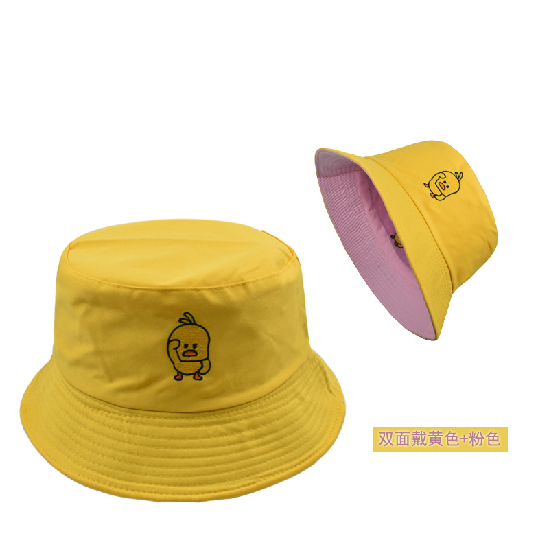 双面戴渔夫帽女小黄鸭刺绣盆帽春夏韩版网红太阳帽学生户外遮阳帽