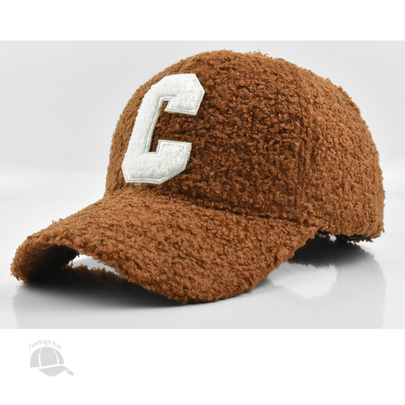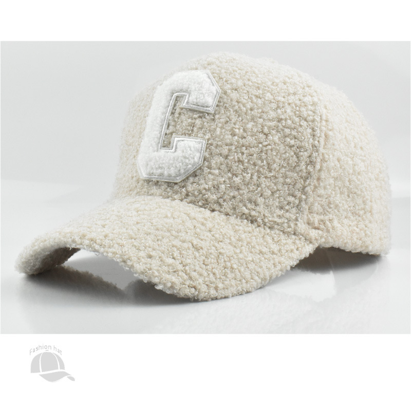 帽子秋冬季ins纯色C标羊羔绒棒球帽户外保暖休闲时尚潮百搭鸭舌帽