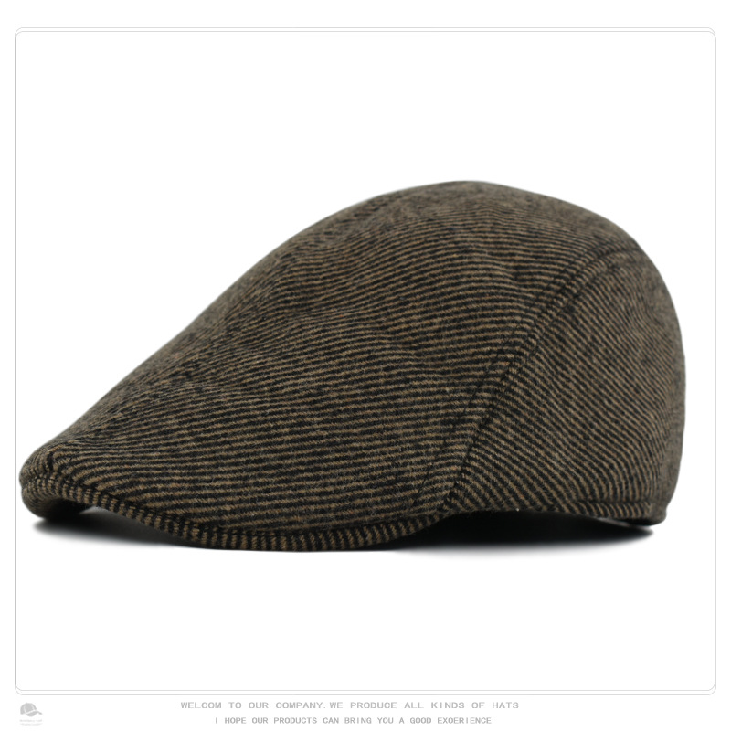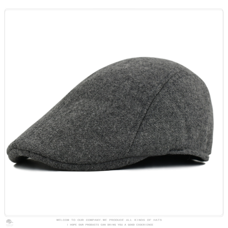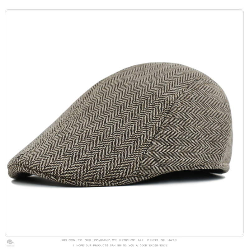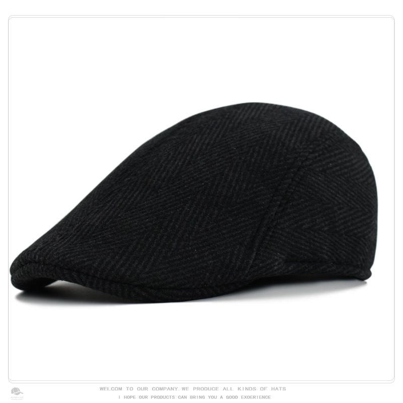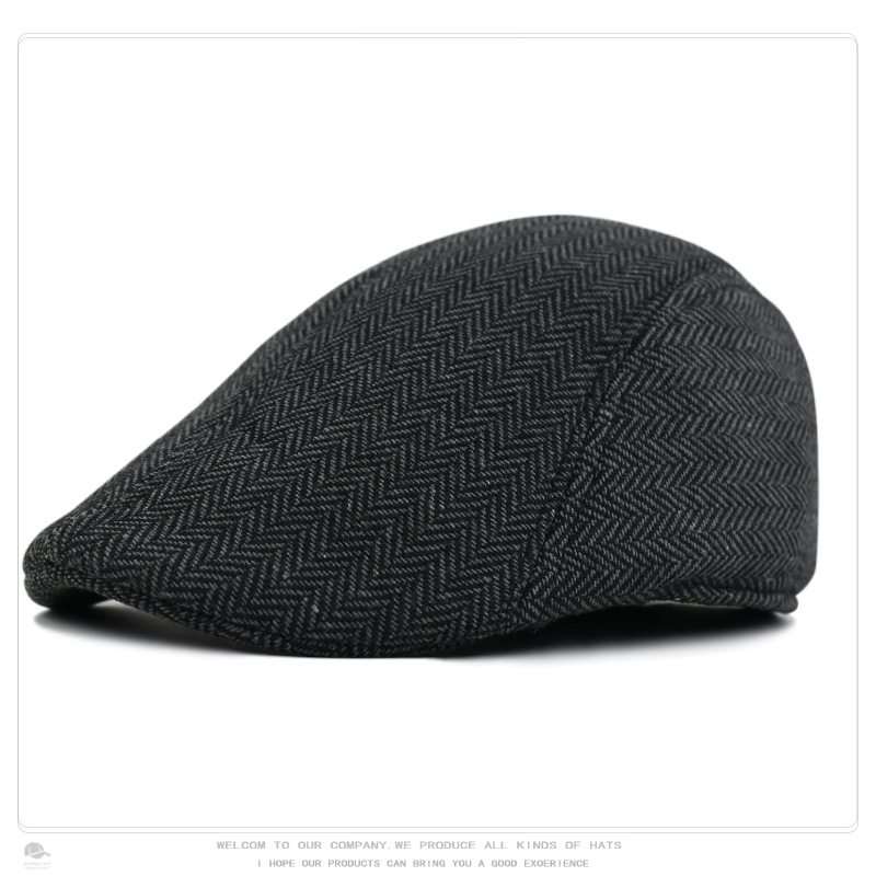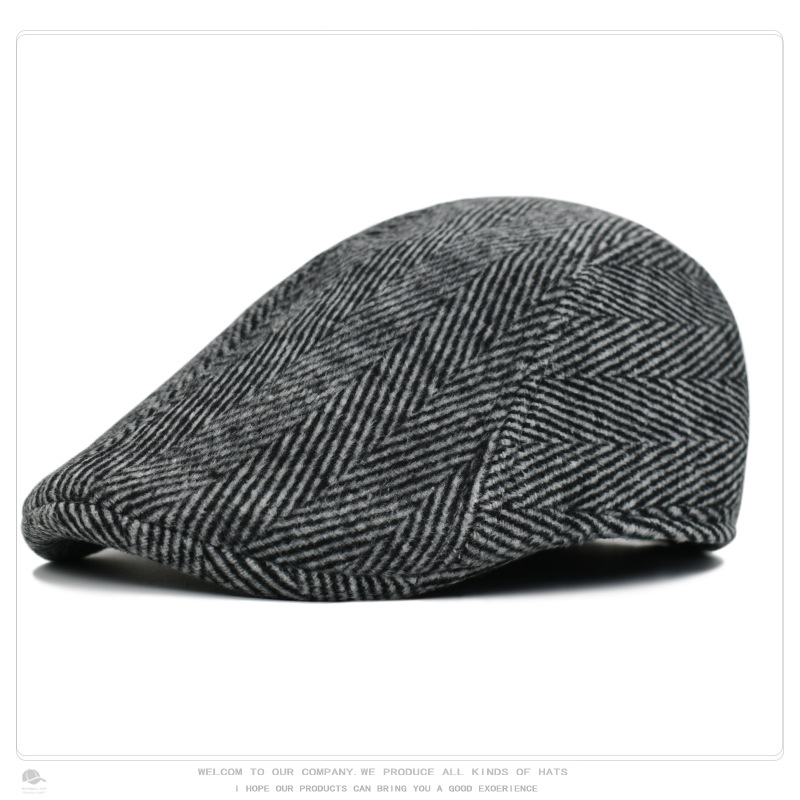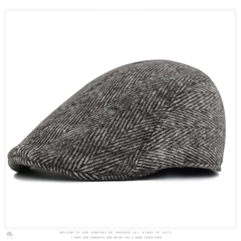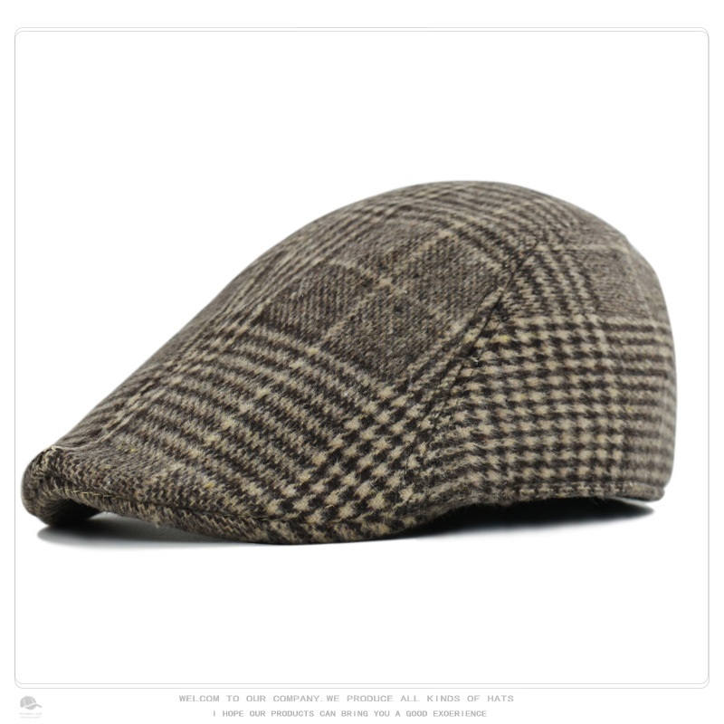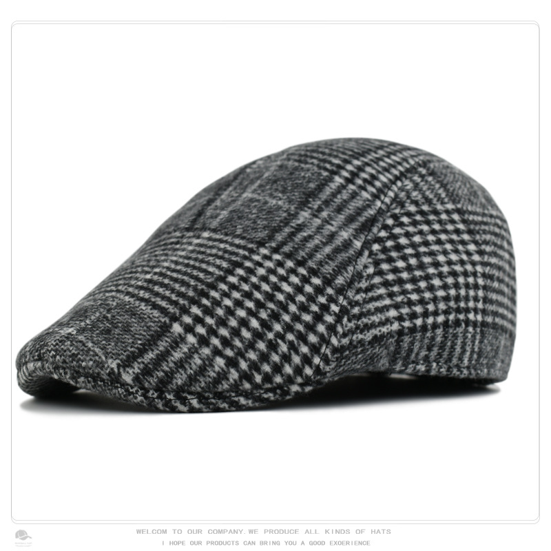 秋冬毛呢保暖夹棉千鸟格贝雷帽男英伦复古休闲鸭舌帽女户外前进帽