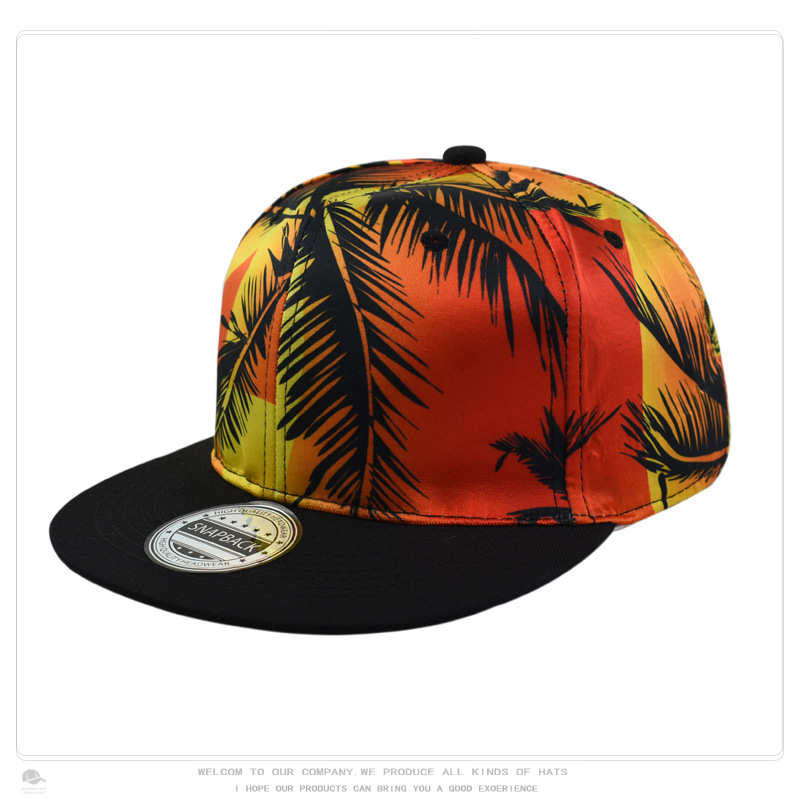 棒球帽女韩版椰子树印花嘻哈帽欧美彩色树叶户外街舞防晒遮阳帽子