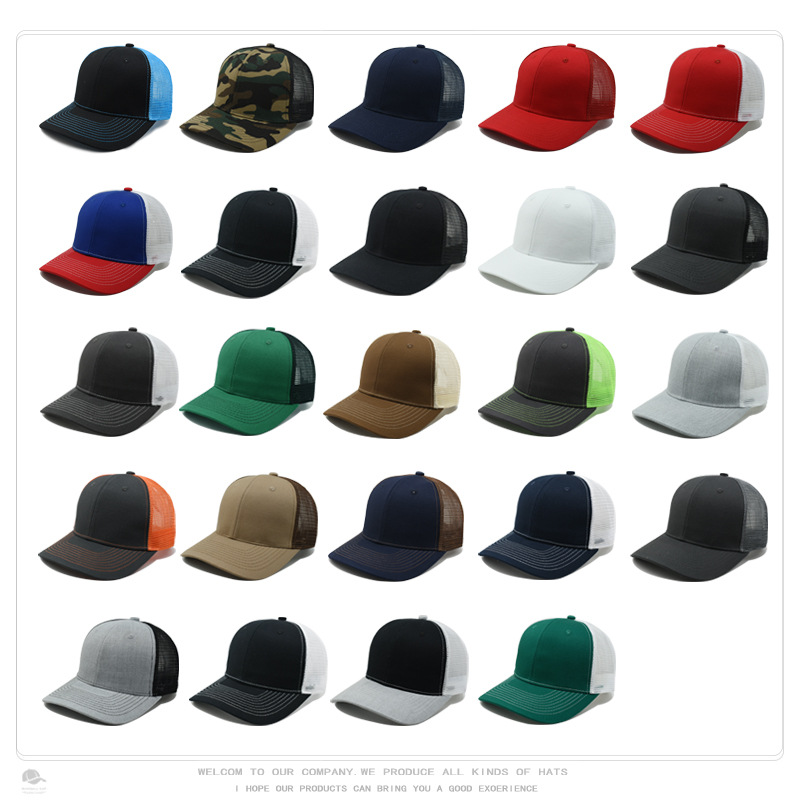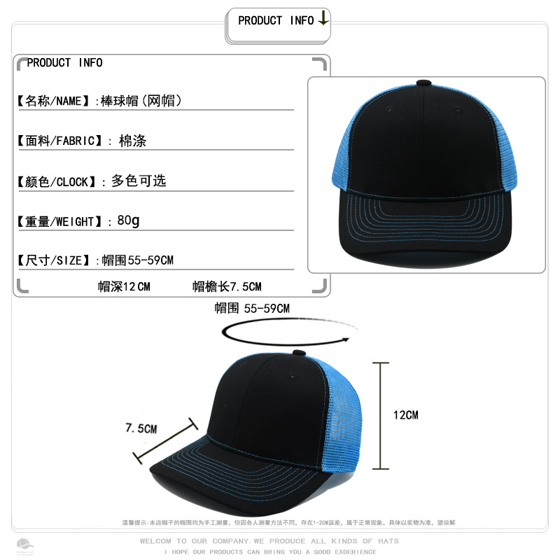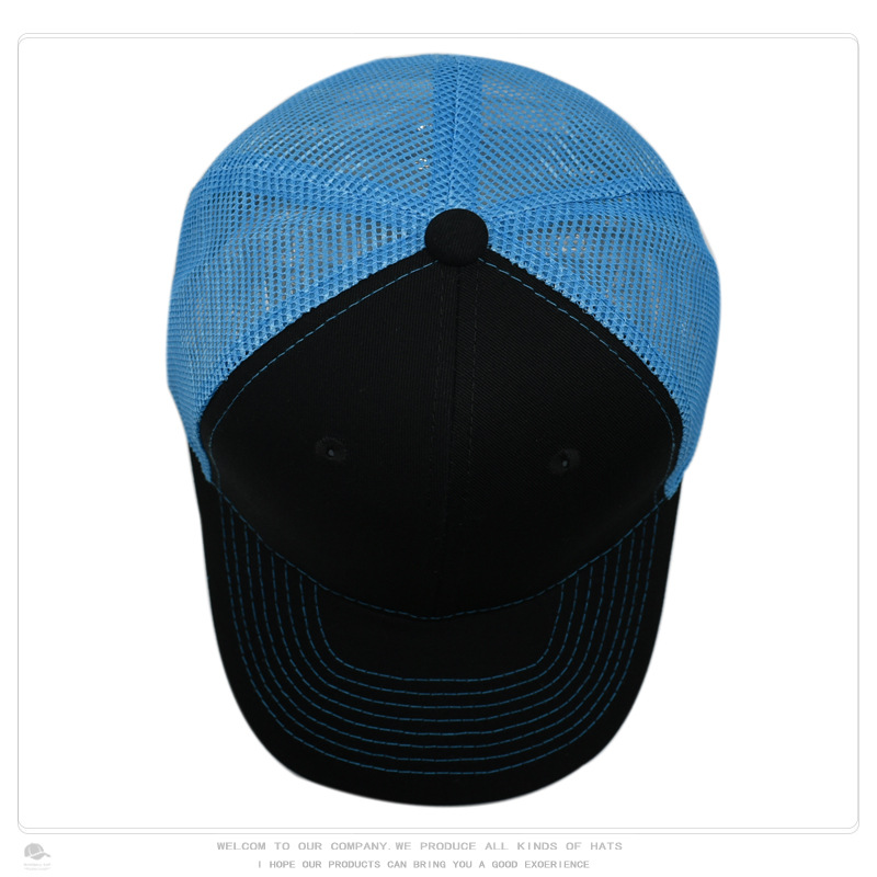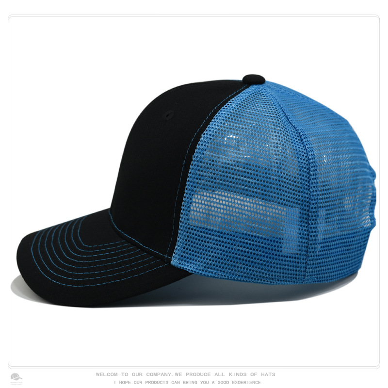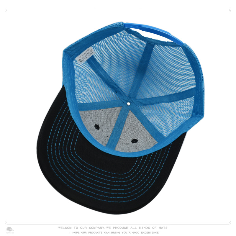 跨境拼色鸭舌帽男硬顶透气遮阳网帽女LOGO刺绣印花卡车司机棒球帽