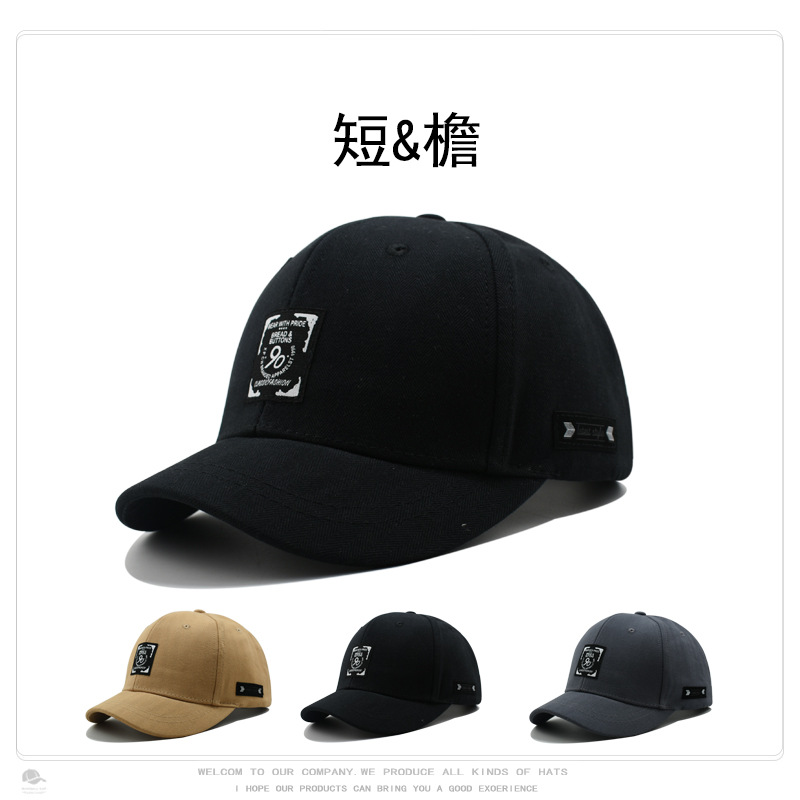 新款短檐帽子男硬顶贴布字母印花棒球帽韩版时尚潮流女遮阳鸭舌帽