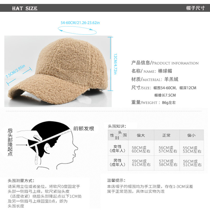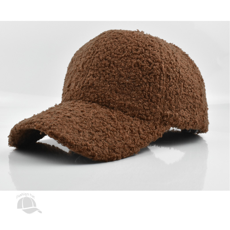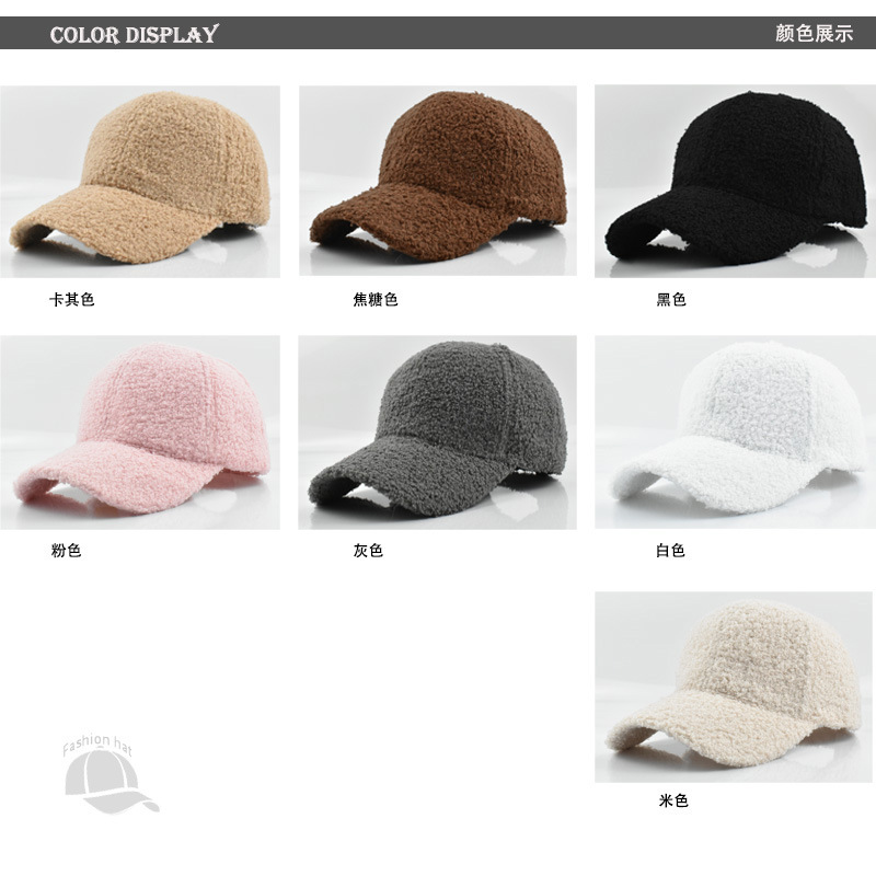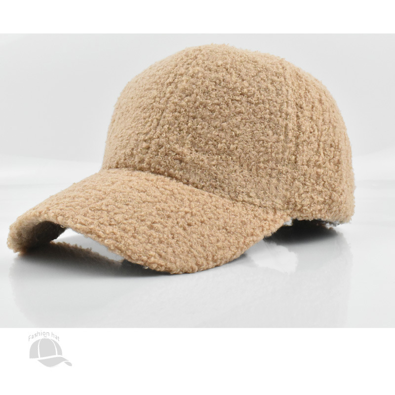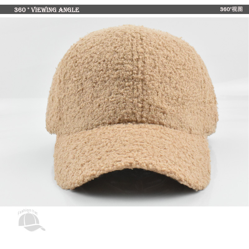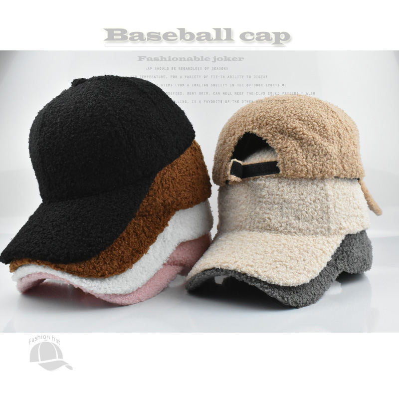 跨境纯色棒球帽女时尚光板羊羔毛鸭舌帽秋冬户外休闲保暖帽子批发