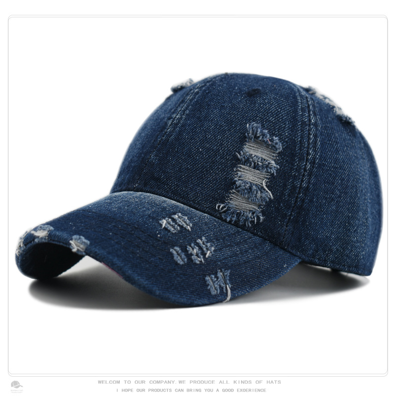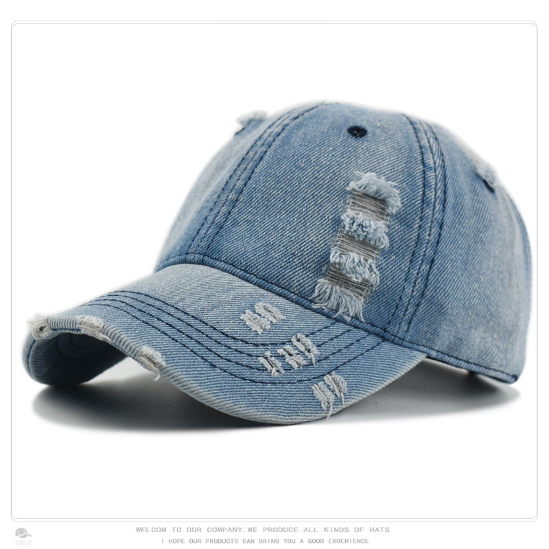 跨境水洗牛仔布软顶鸭舌帽女显脸小韩版街头做旧破洞嘻哈棒球帽男