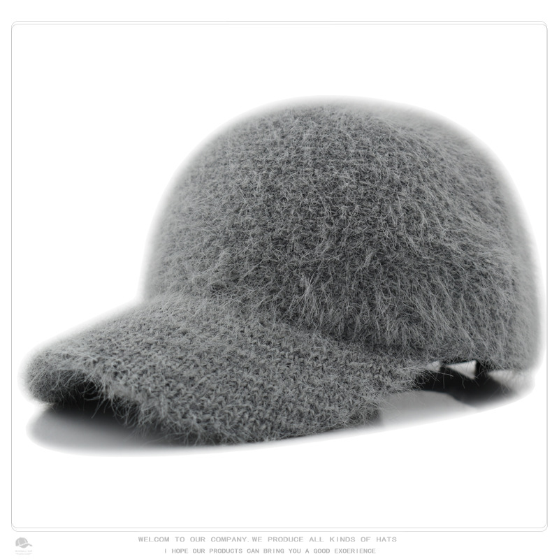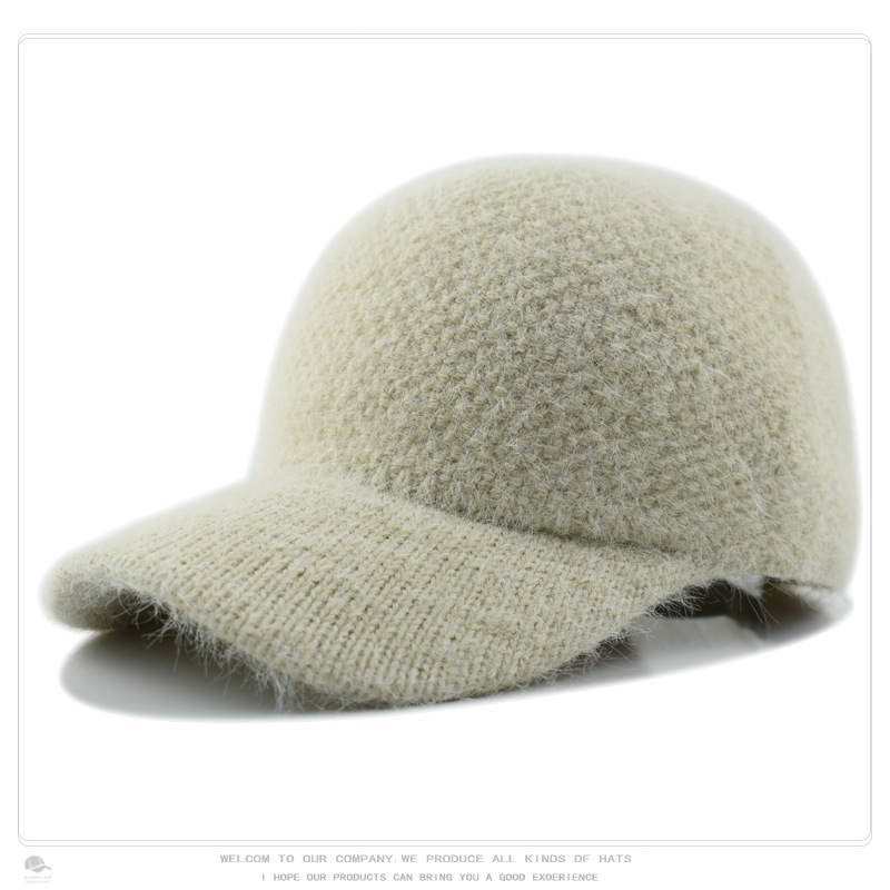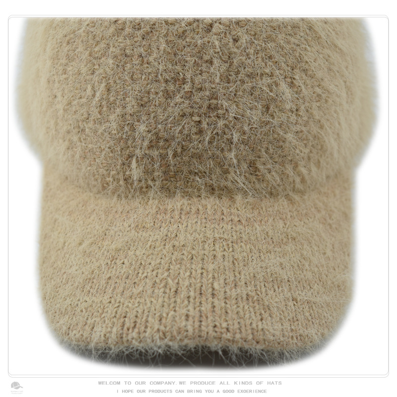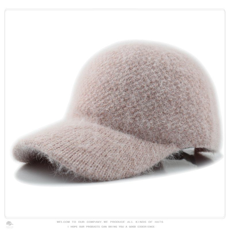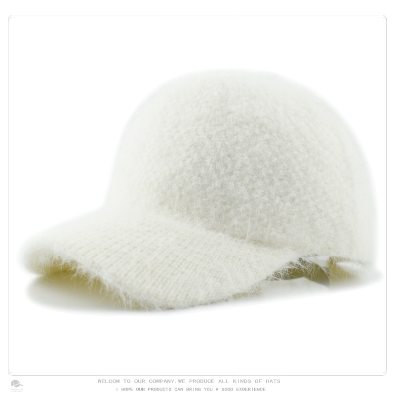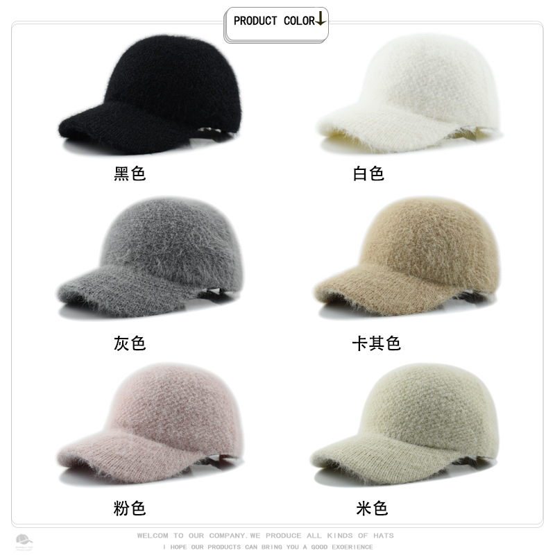 韩版秋冬针织兔毛棒球帽保暖百搭加绒加厚毛线帽毛绒绒甜酷鸭舌帽