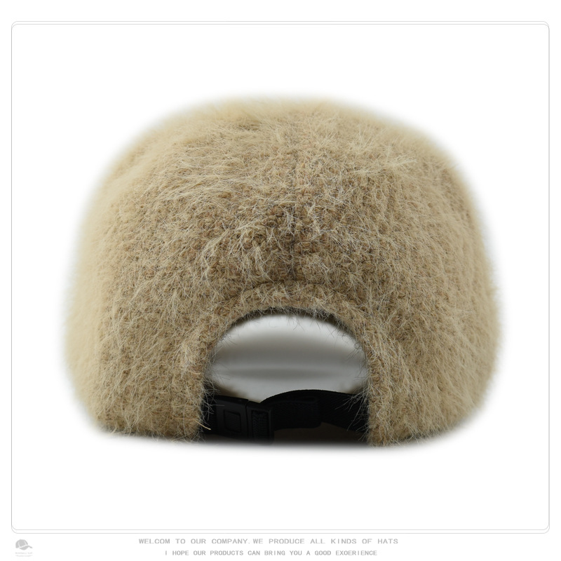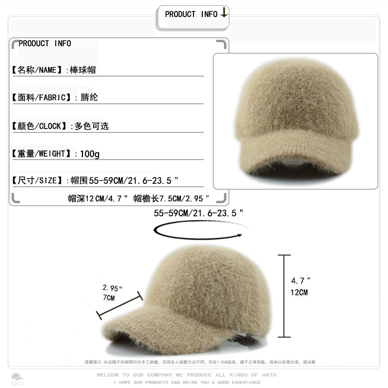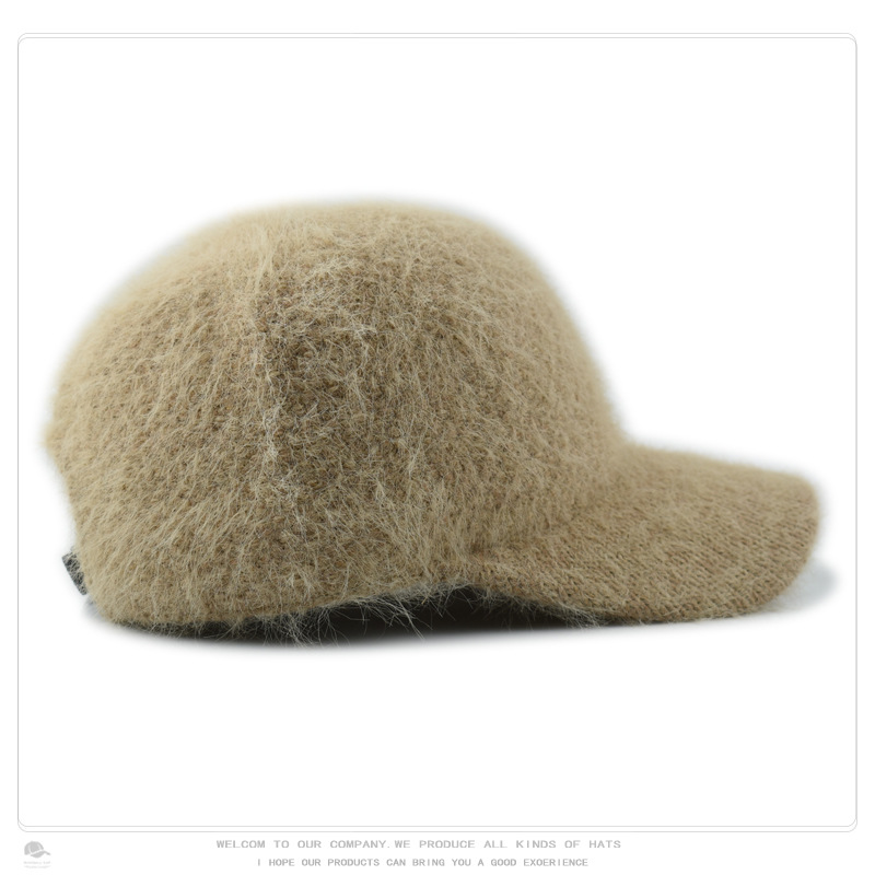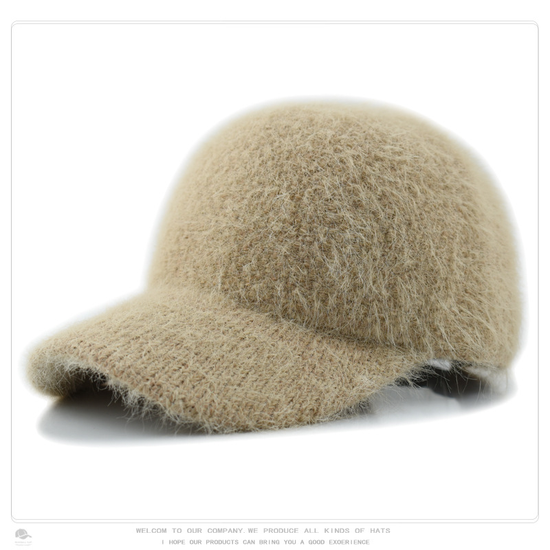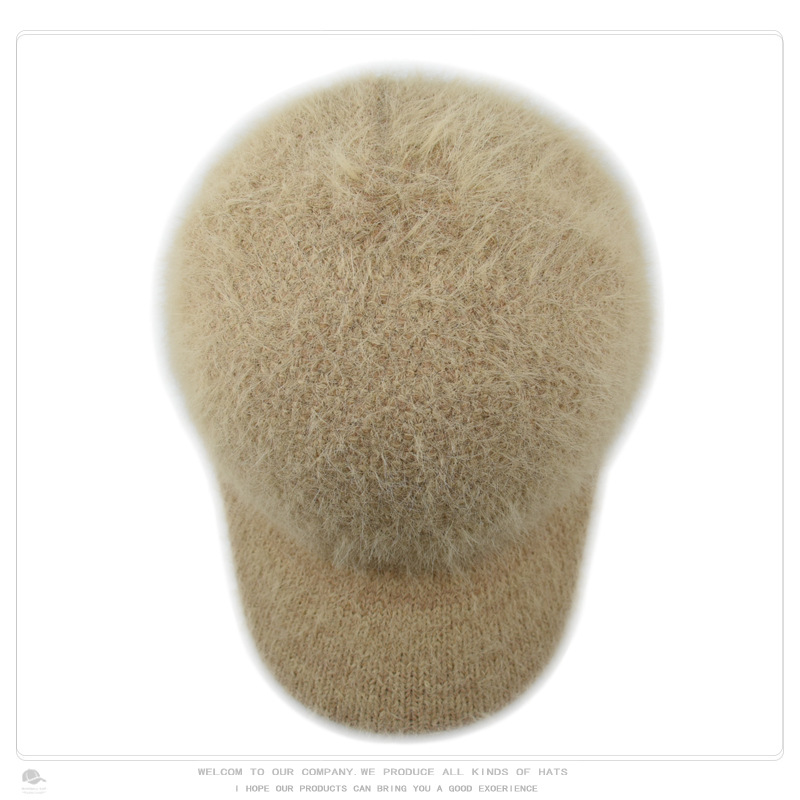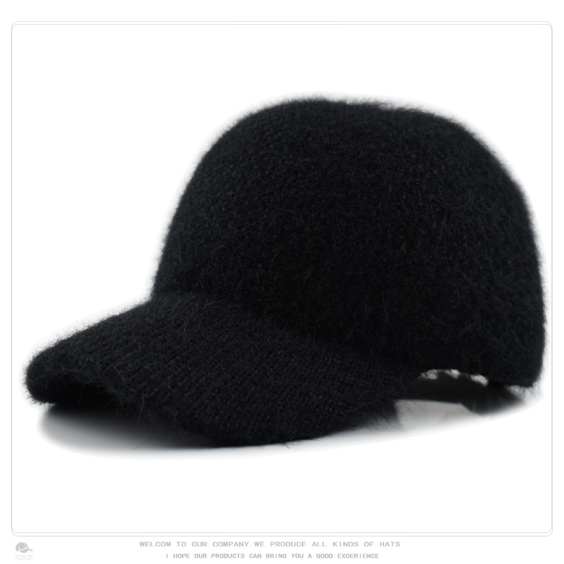 韩版秋冬针织兔毛棒球帽保暖百搭加绒加厚毛线帽毛绒绒甜酷鸭舌帽