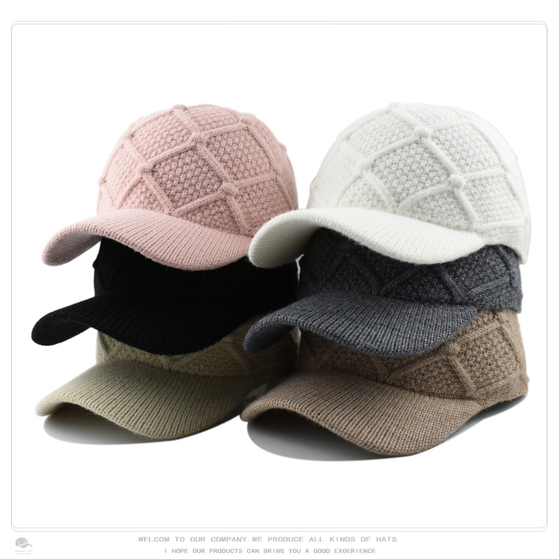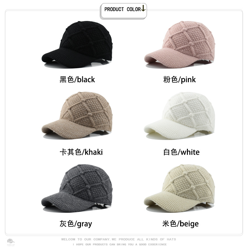 帽子女冬季韩版潮百搭时尚针织毛线棒球帽休闲户外防寒保暖鸭舌帽