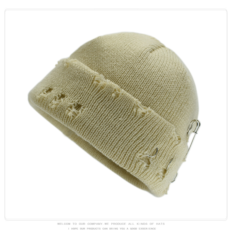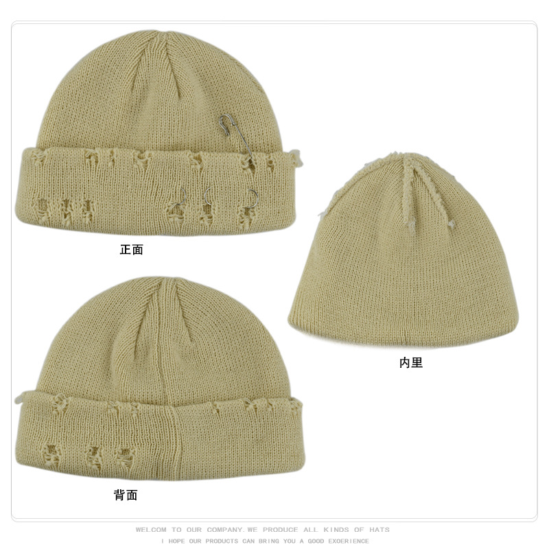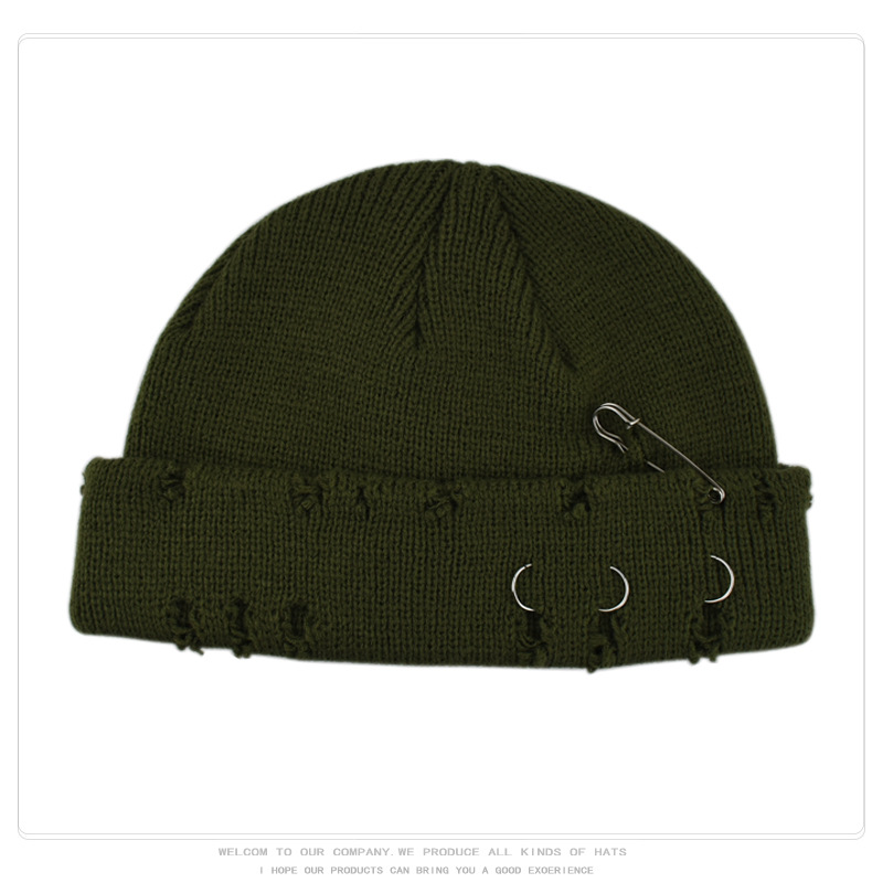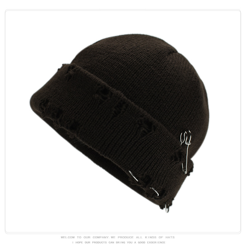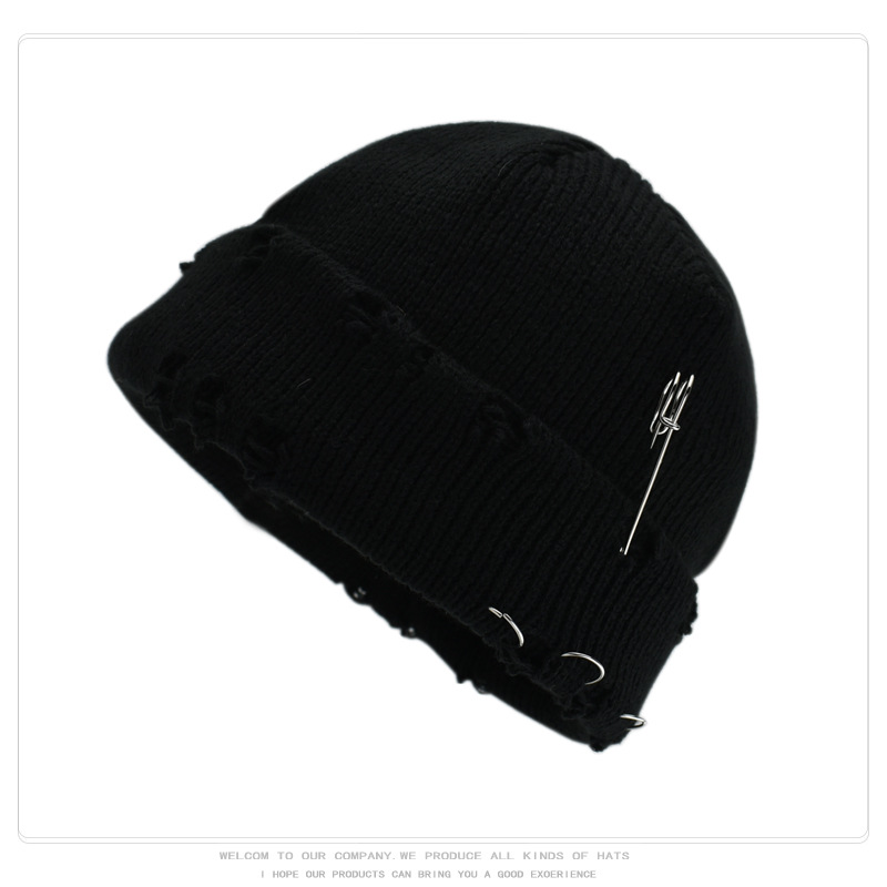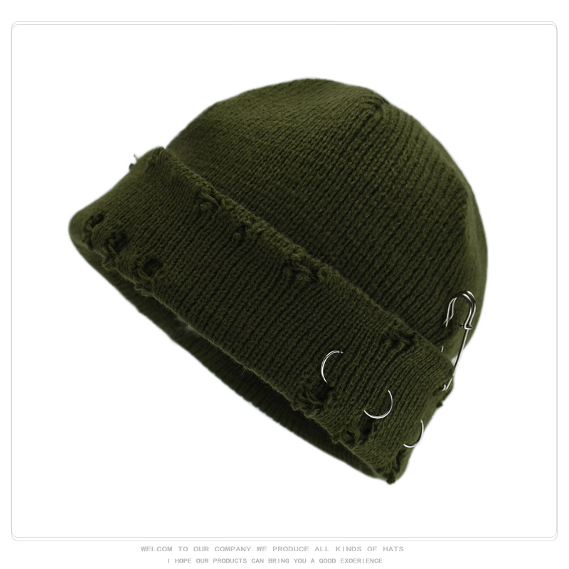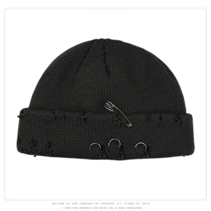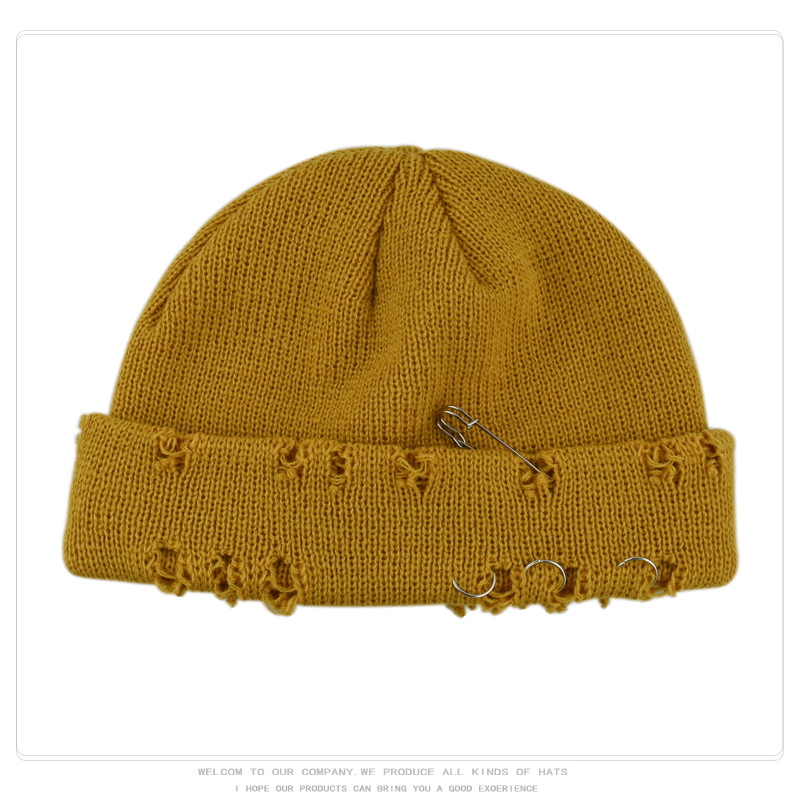 帽子女秋冬季韩版圆环别针嘻哈毛线潮流复古破洞帽男针织帽地主帽