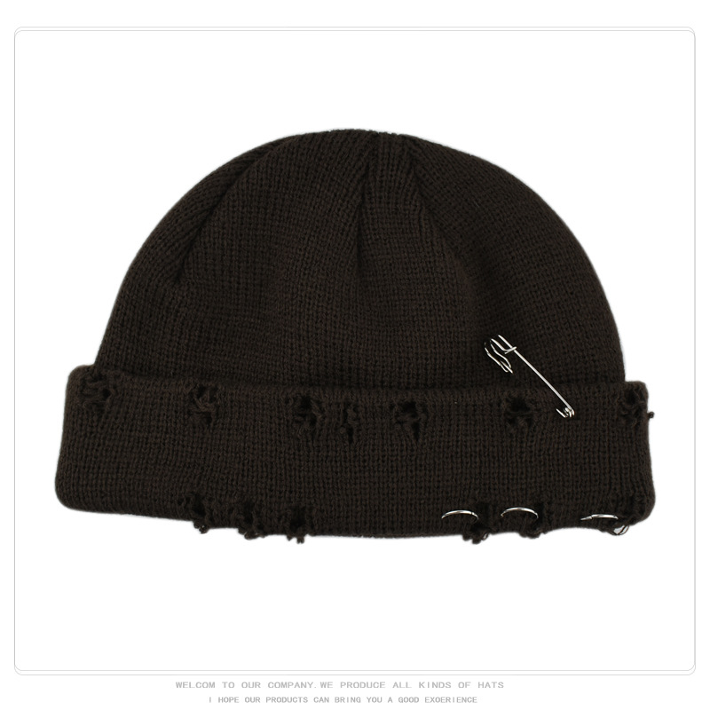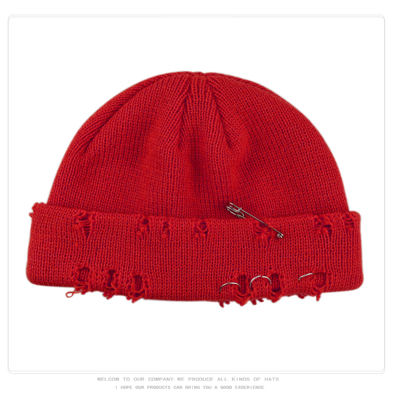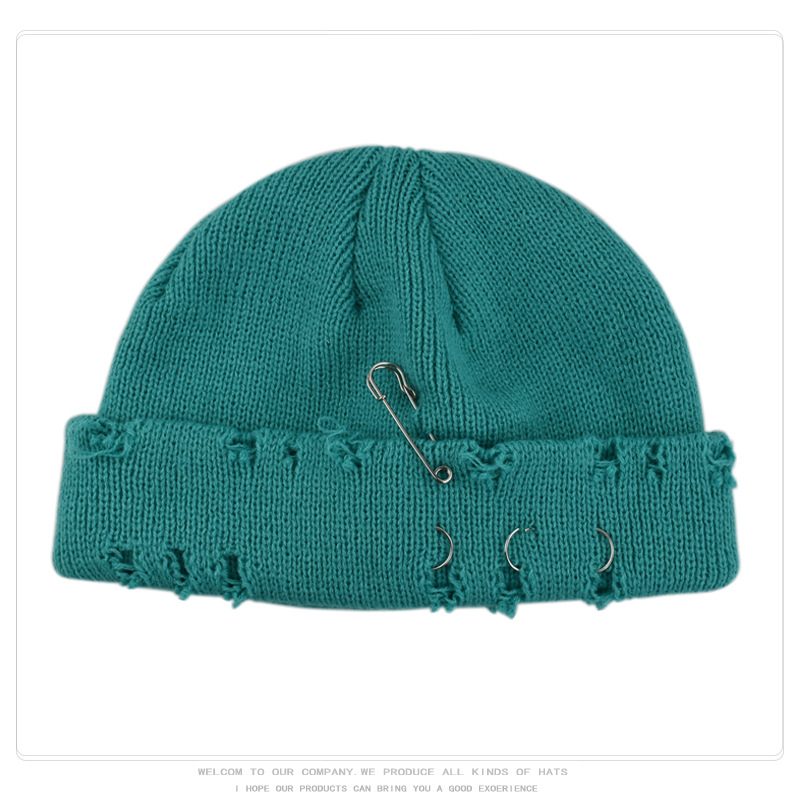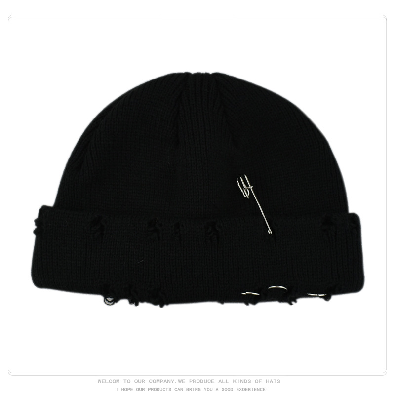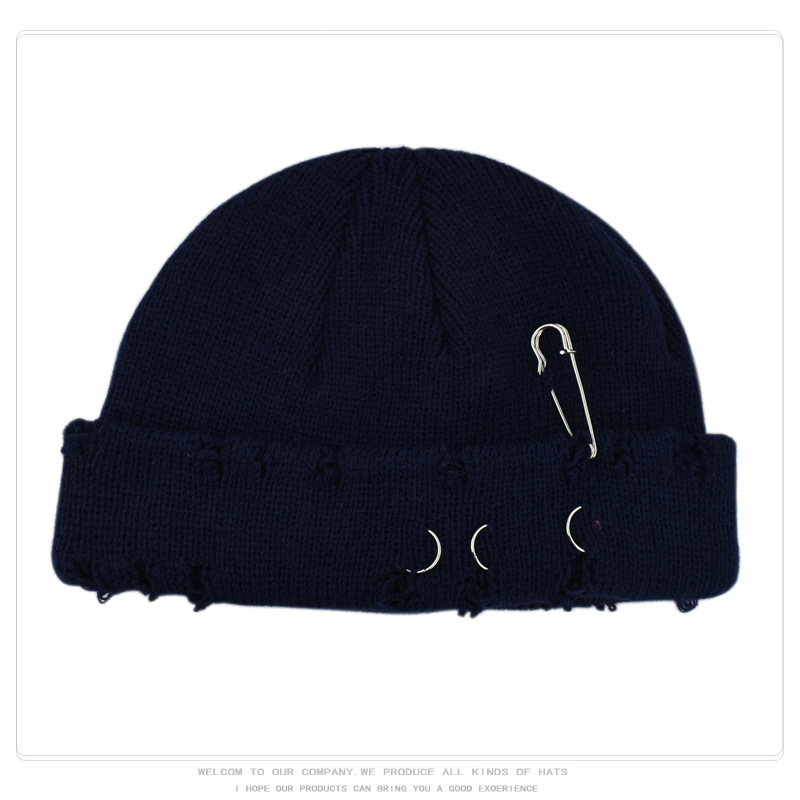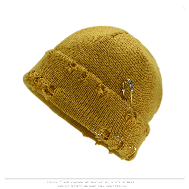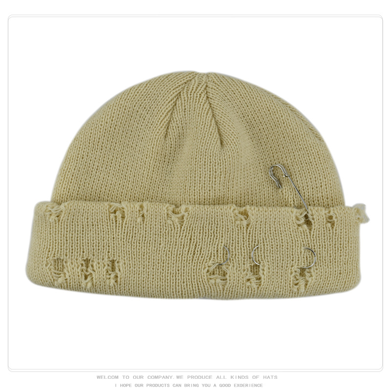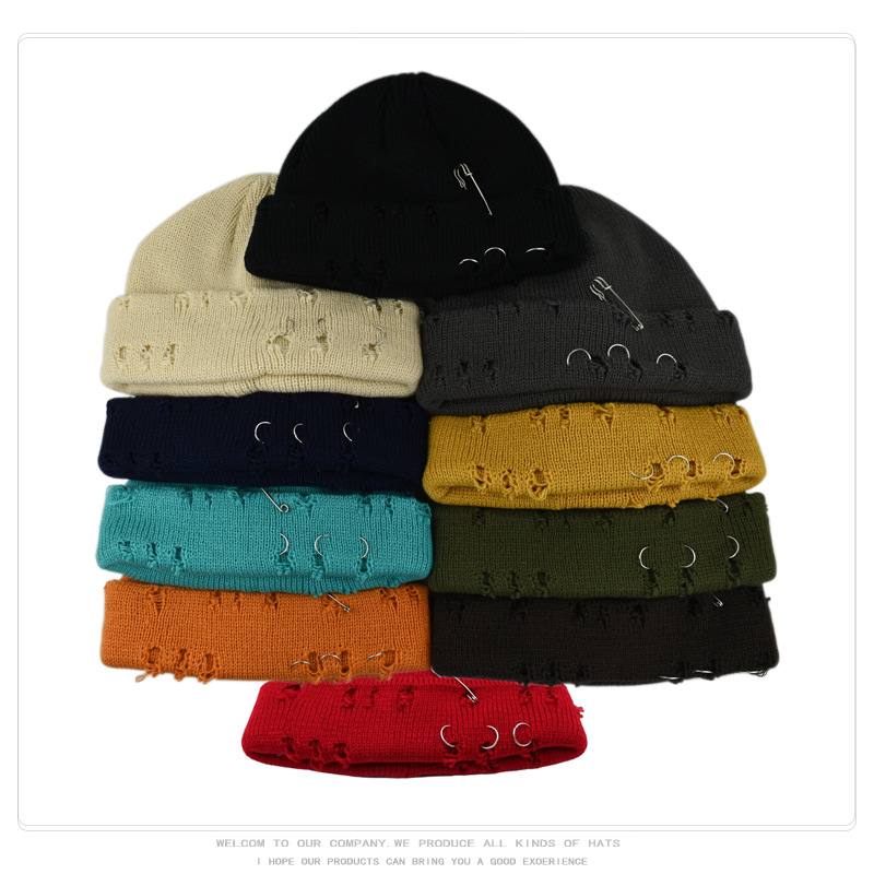 帽子女秋冬季韩版圆环别针嘻哈毛线潮流复古破洞帽男针织帽地主帽