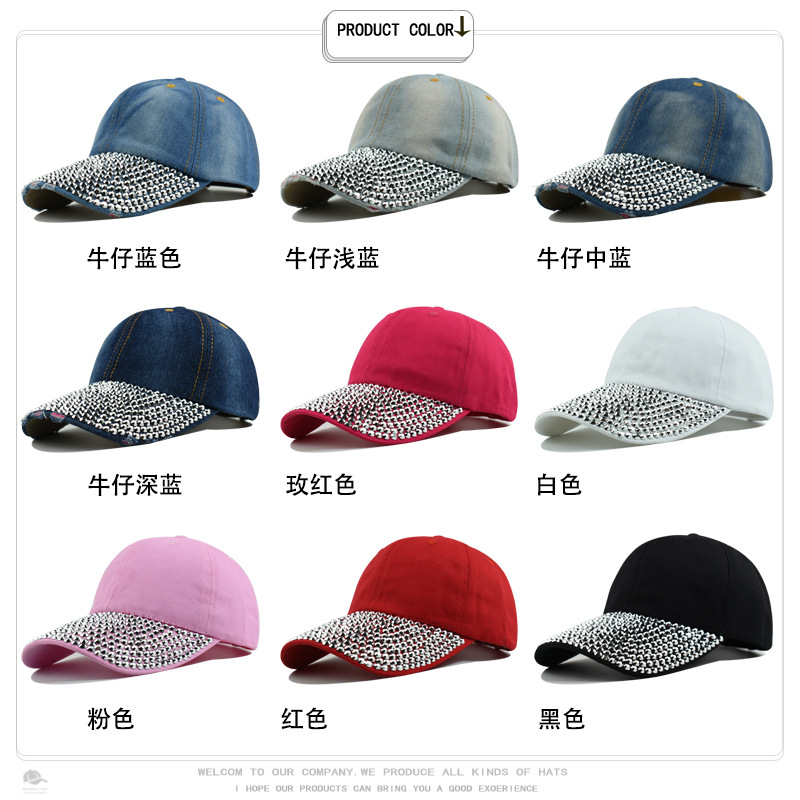 跨境新款镶钻棒球帽欧美时尚甜美点钻鸭舌帽休闲户外防晒遮阳帽子