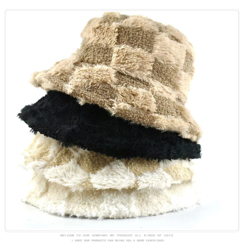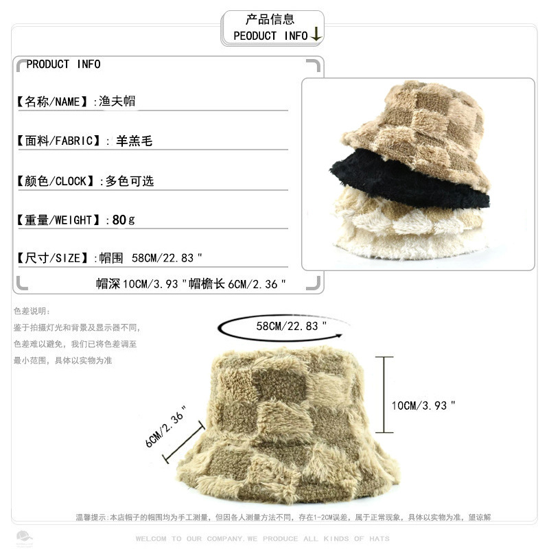 日系羊羔毛渔夫帽女韩版冬季百搭时尚显脸小盆帽休闲保暖毛绒帽子
