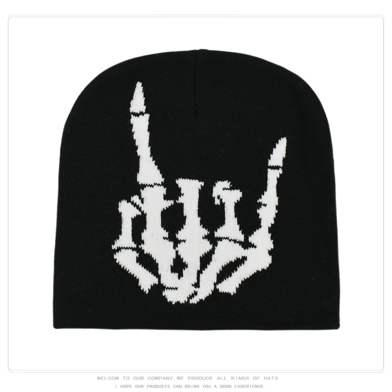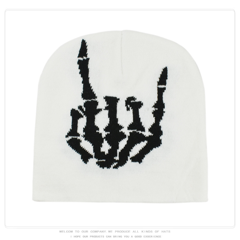 外贸跨境万圣节蜘蛛网眼镜鬼牙提花针织帽秋冬情侣流行毛线套头帽