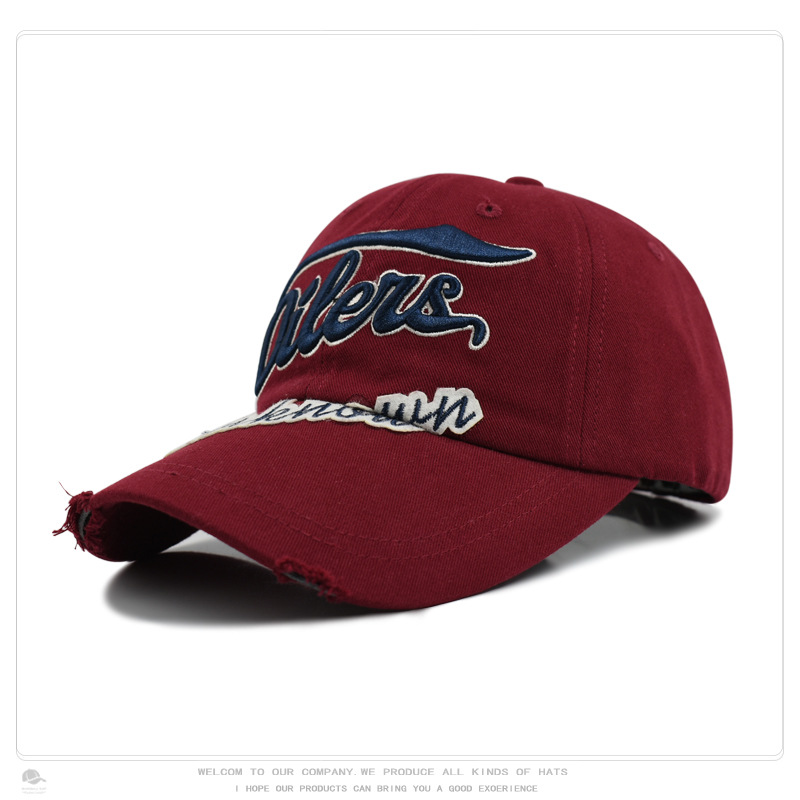 韩版复古字母立体刺绣棒球帽个性百搭破洞街头鸭舌帽春夏防晒帽子