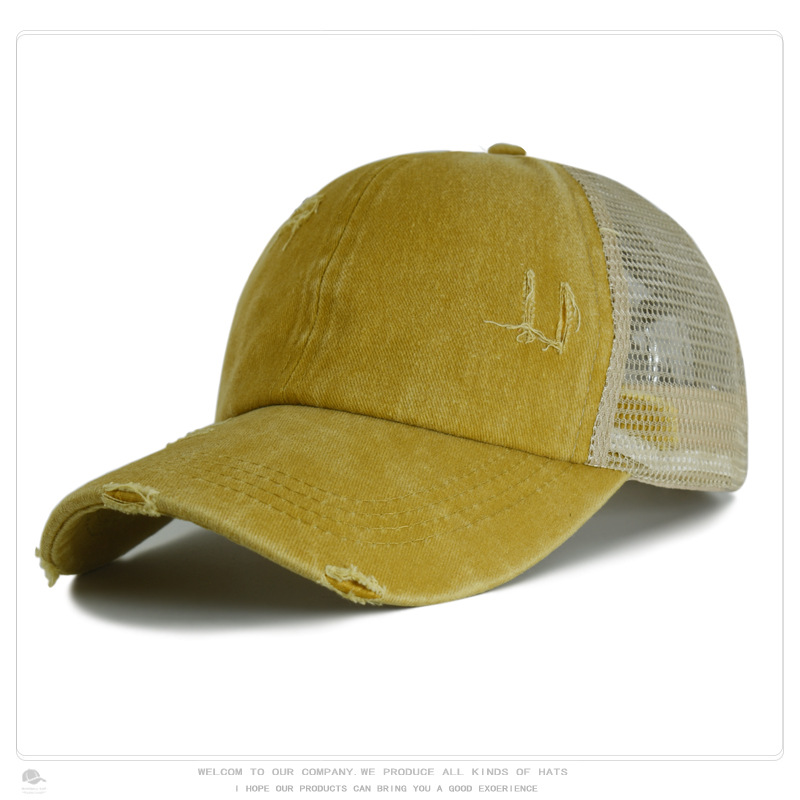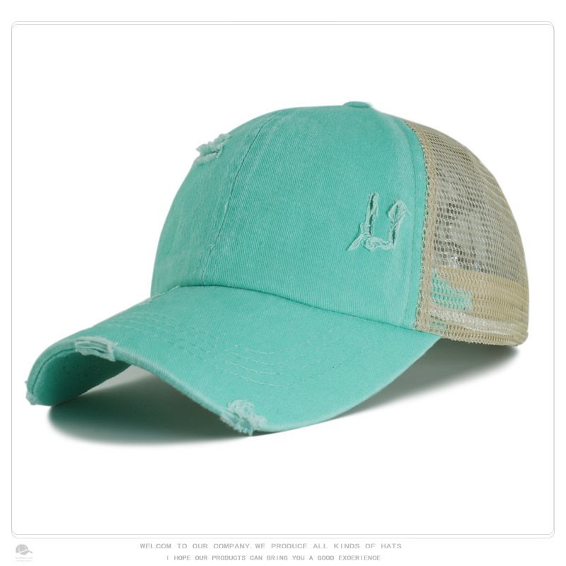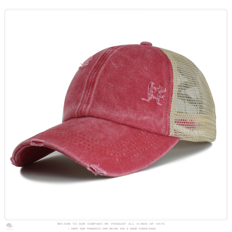 外贸帽子水洗马尾棒球帽女夏春秋季做旧户外防晒帽纯色鸭舌帽批发