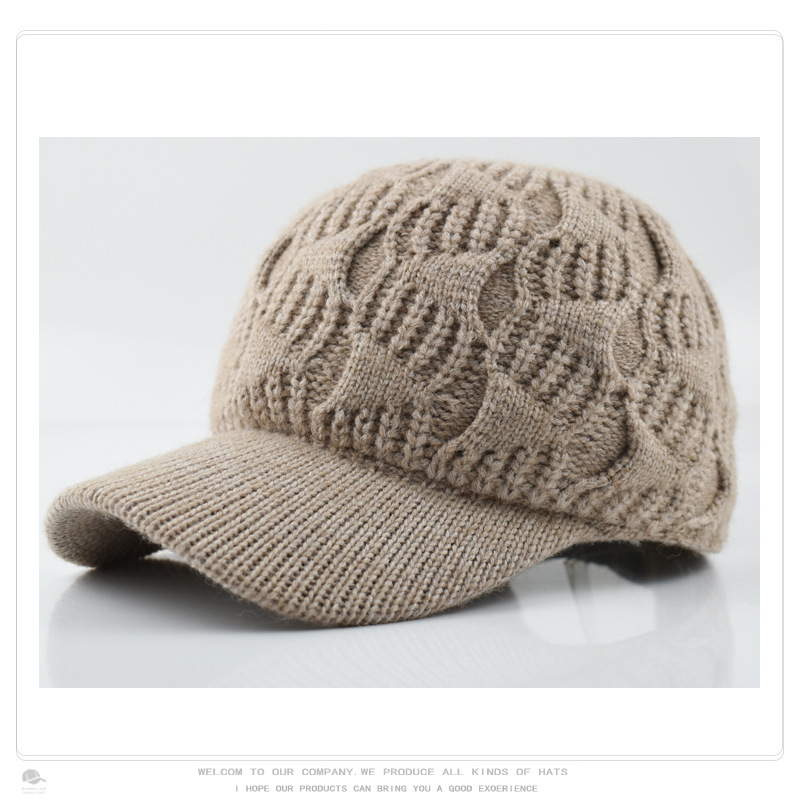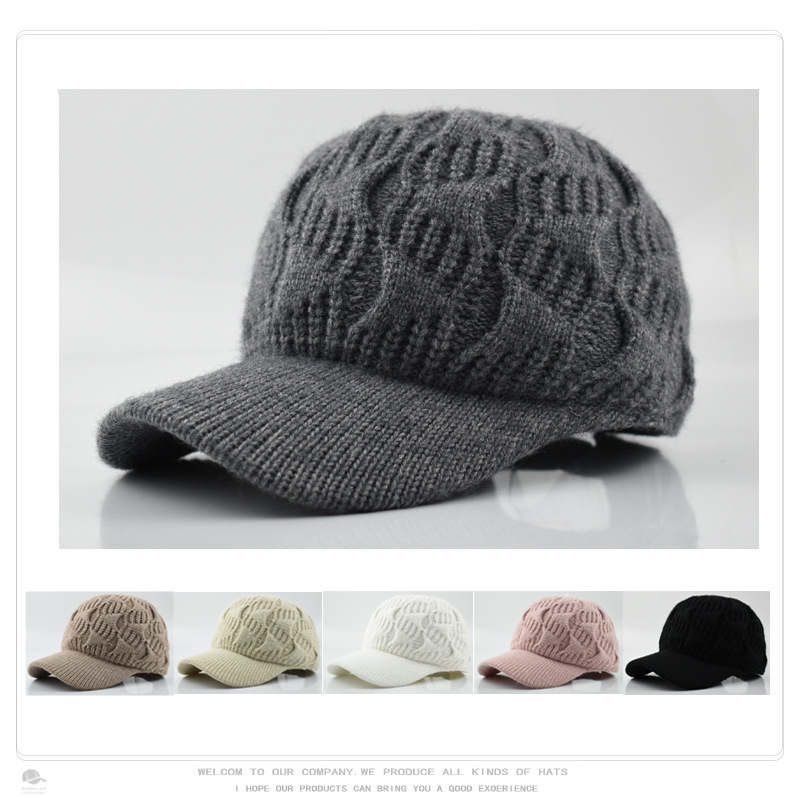 新款毛线棒球帽韩版百搭可调节户外休闲鸭舌帽秋冬季保暖针织帽子